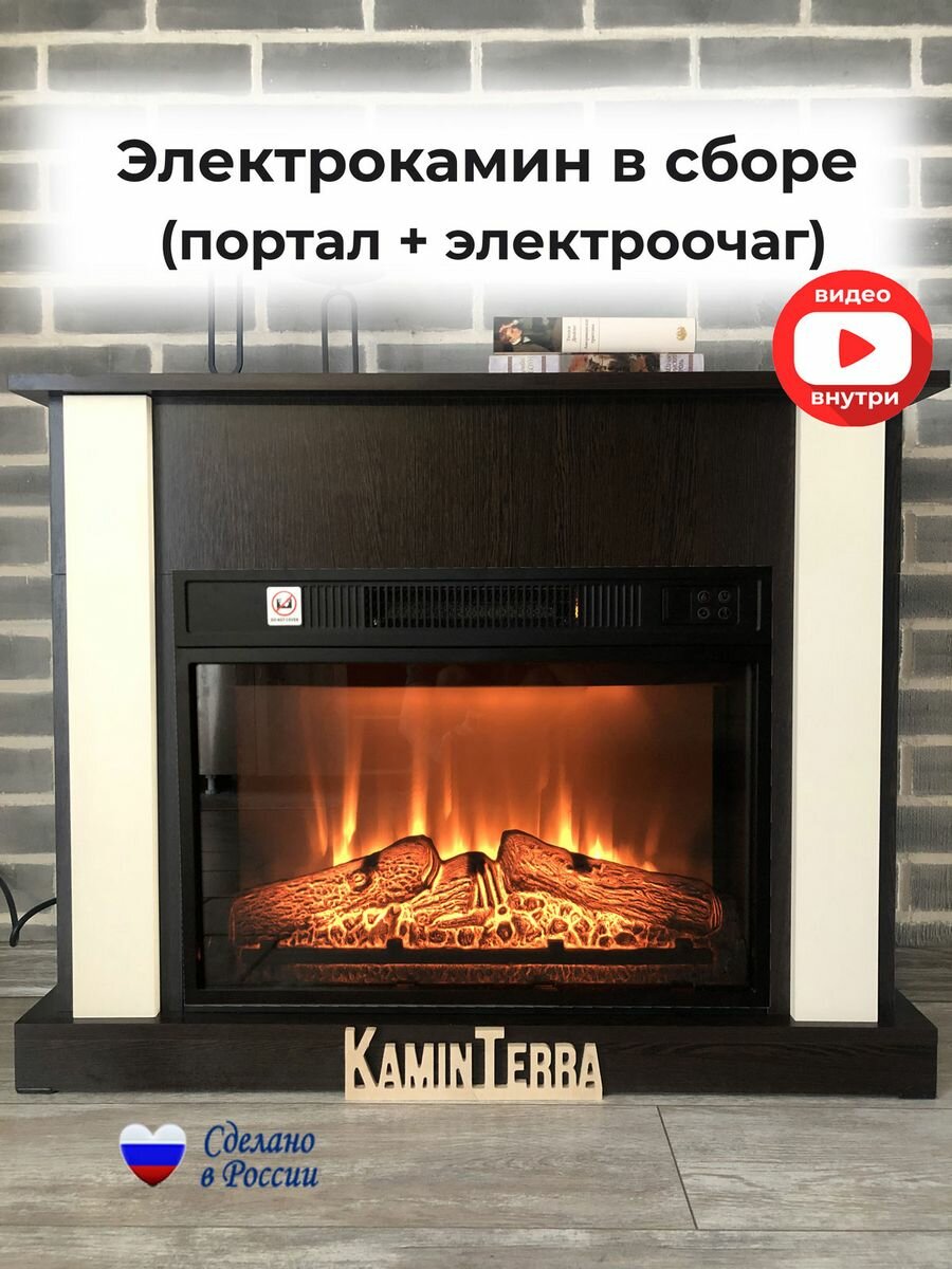 Камин электрический с обогревом и звуком KaminTerra Турин Крем