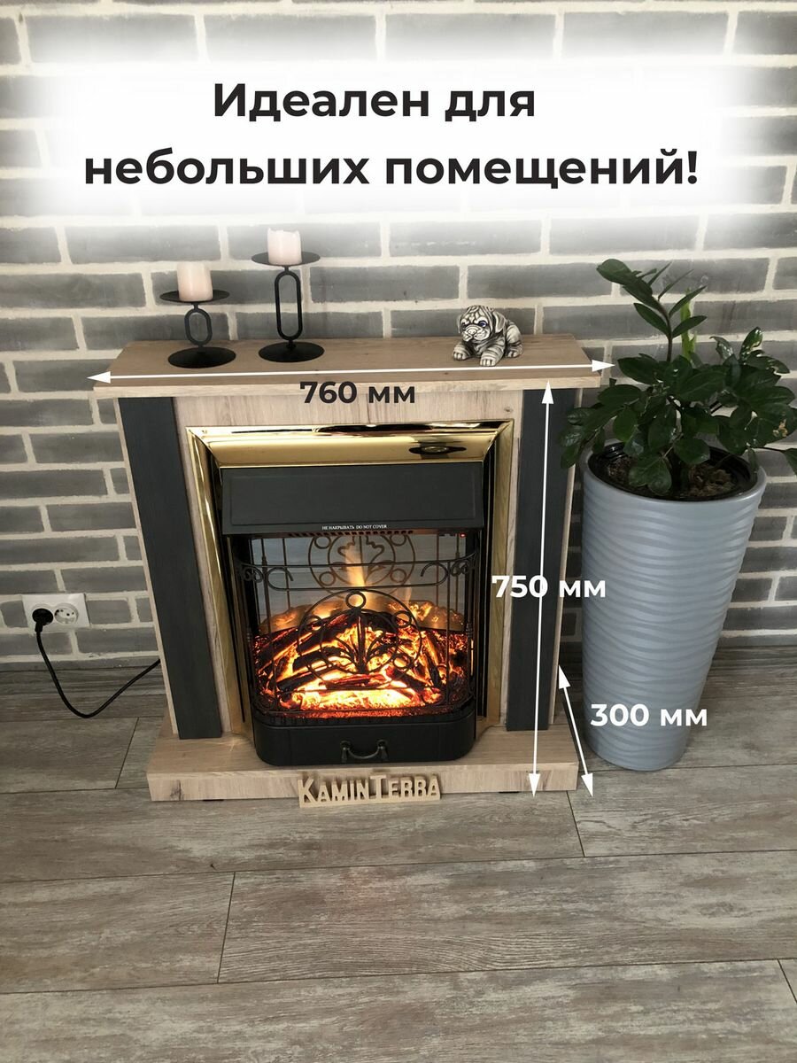 Купить Камин электрический с обогревом и звуком KaminTerra Турин Дуб