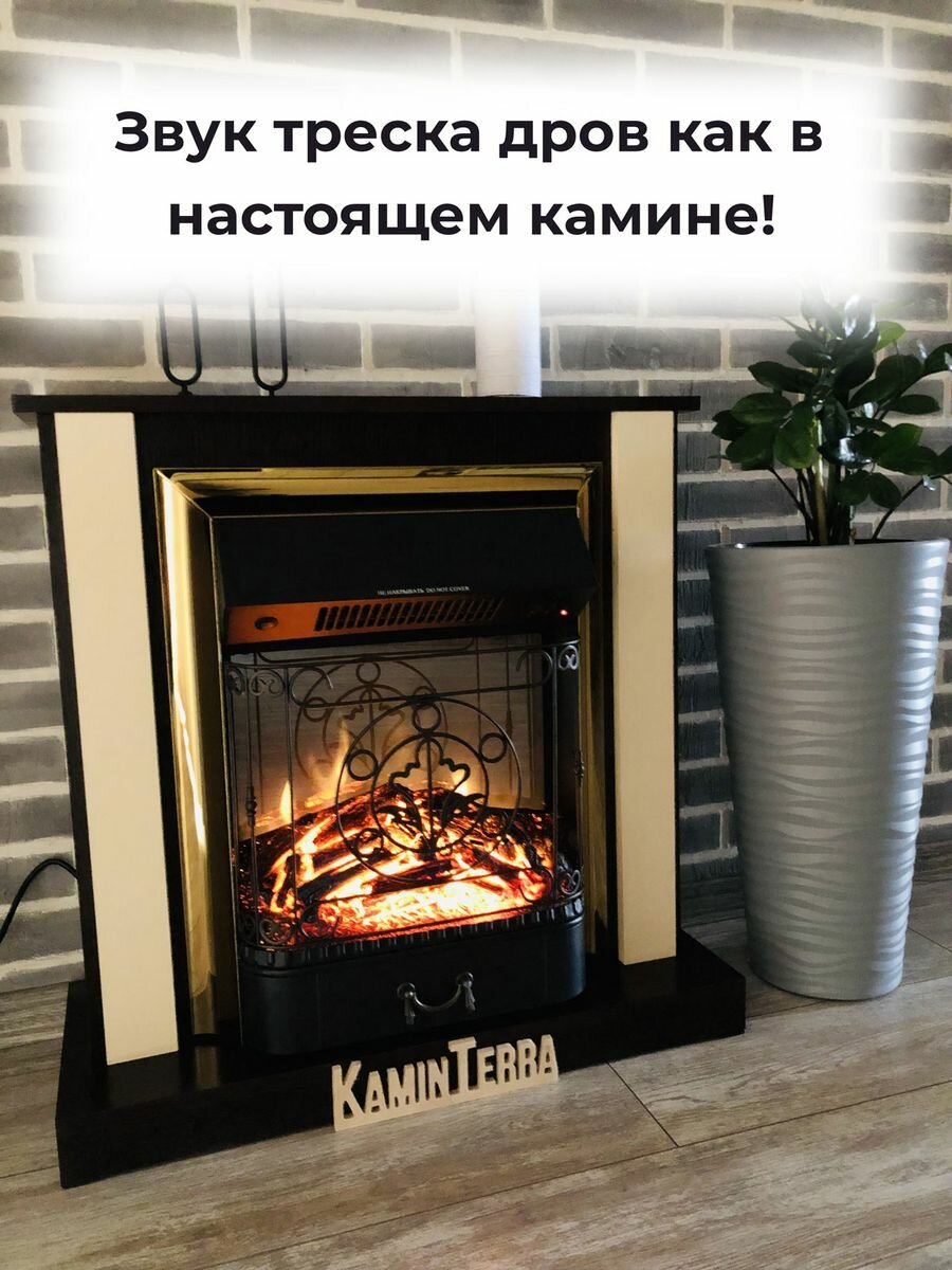 Камин электрический с обогревом и звуком KaminTerra Турин Крем
