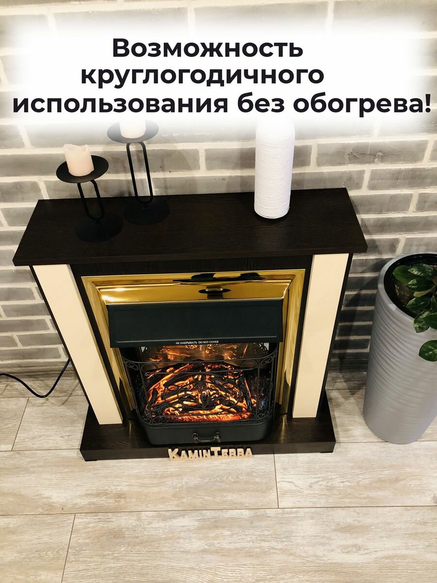Камин электрический бежевый с порталом KaminTerra Селена Крем с обогревом и звуком