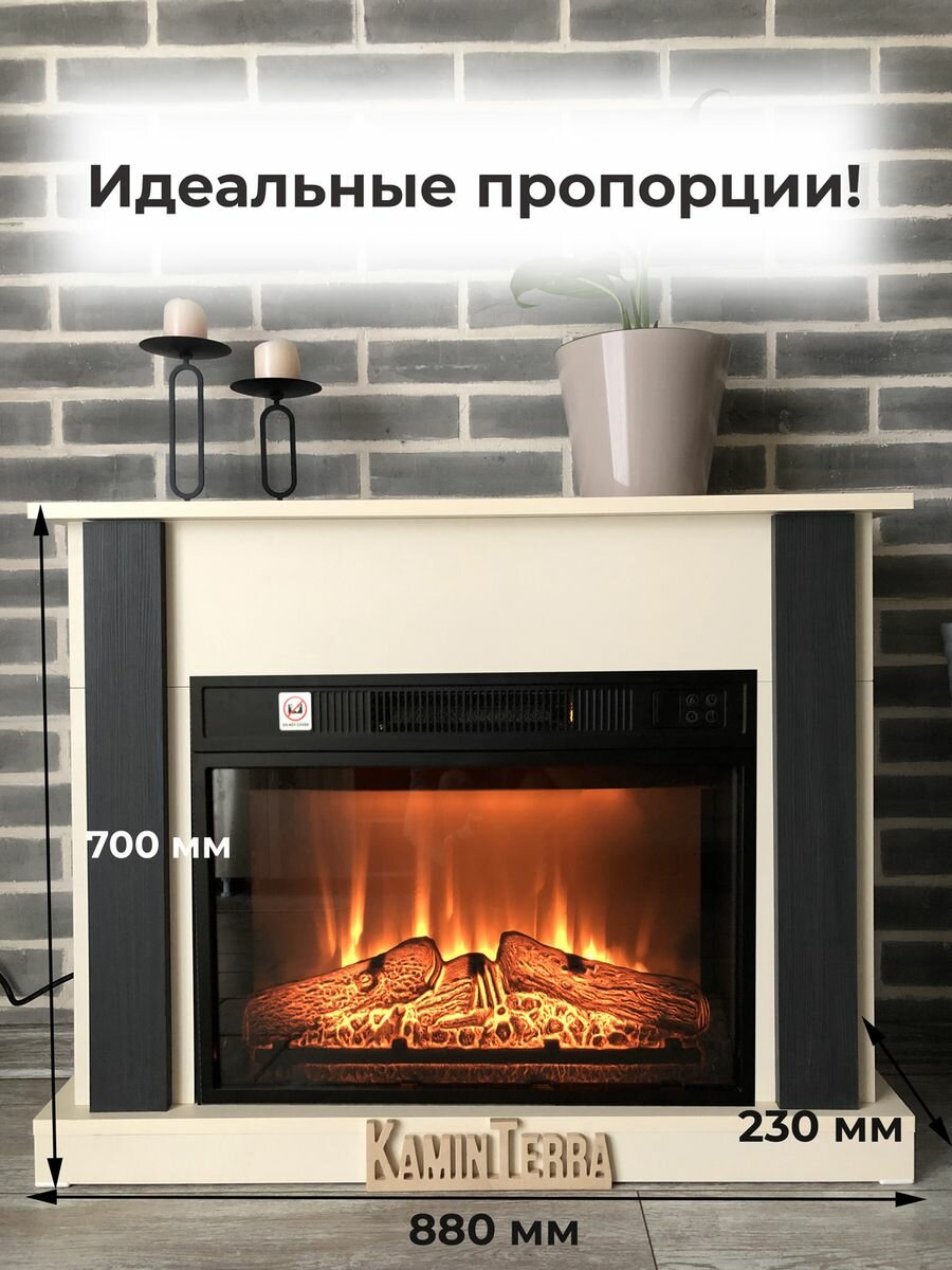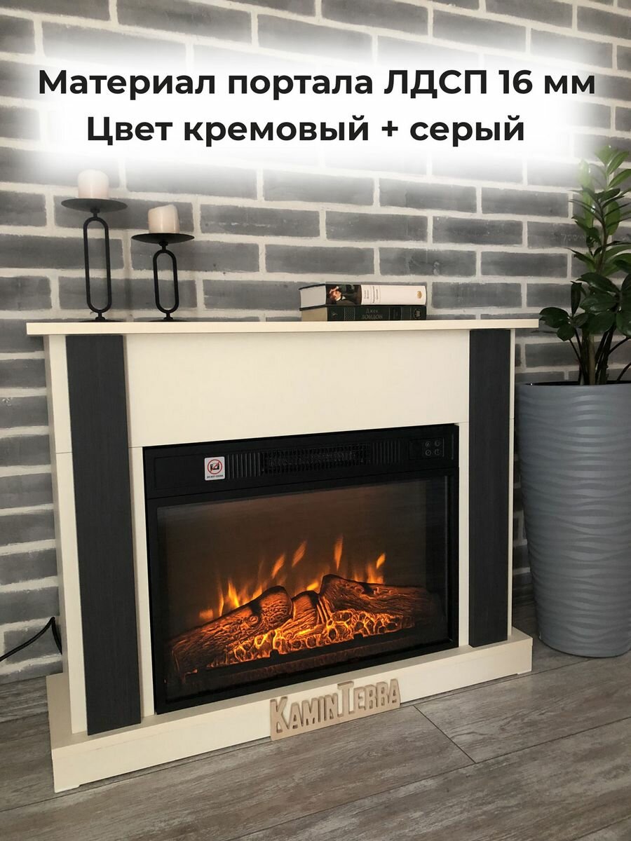 Камин электрический бежевый с порталом KaminTerra Селена Крем с обогревом и звуком