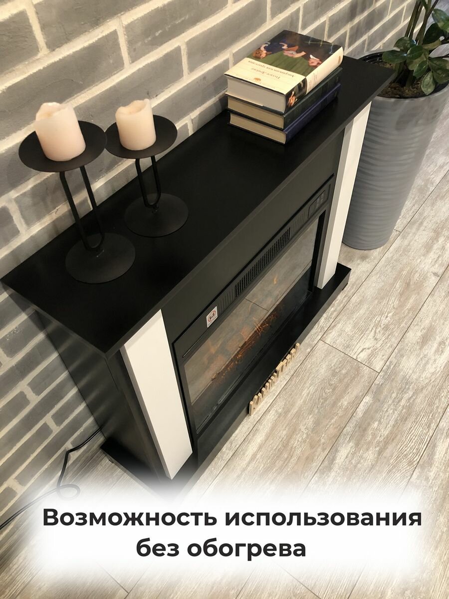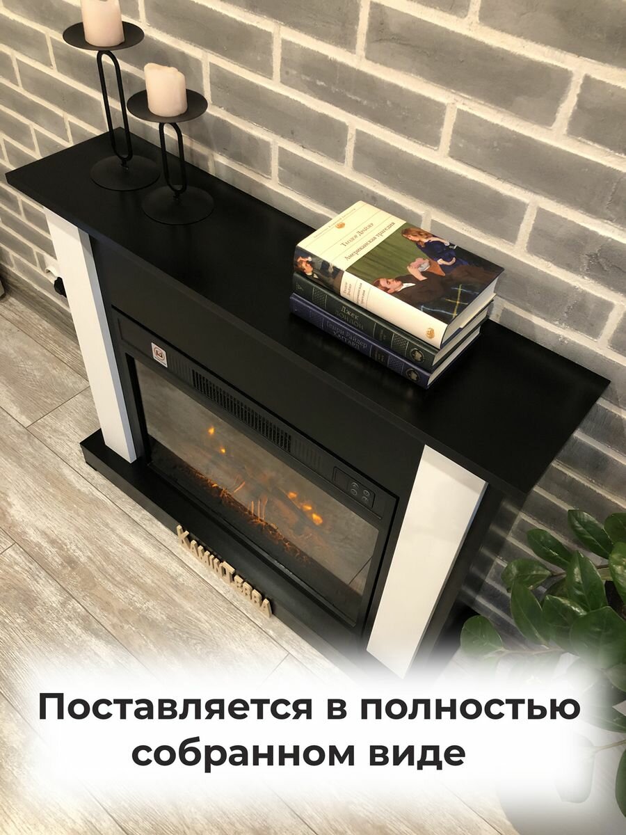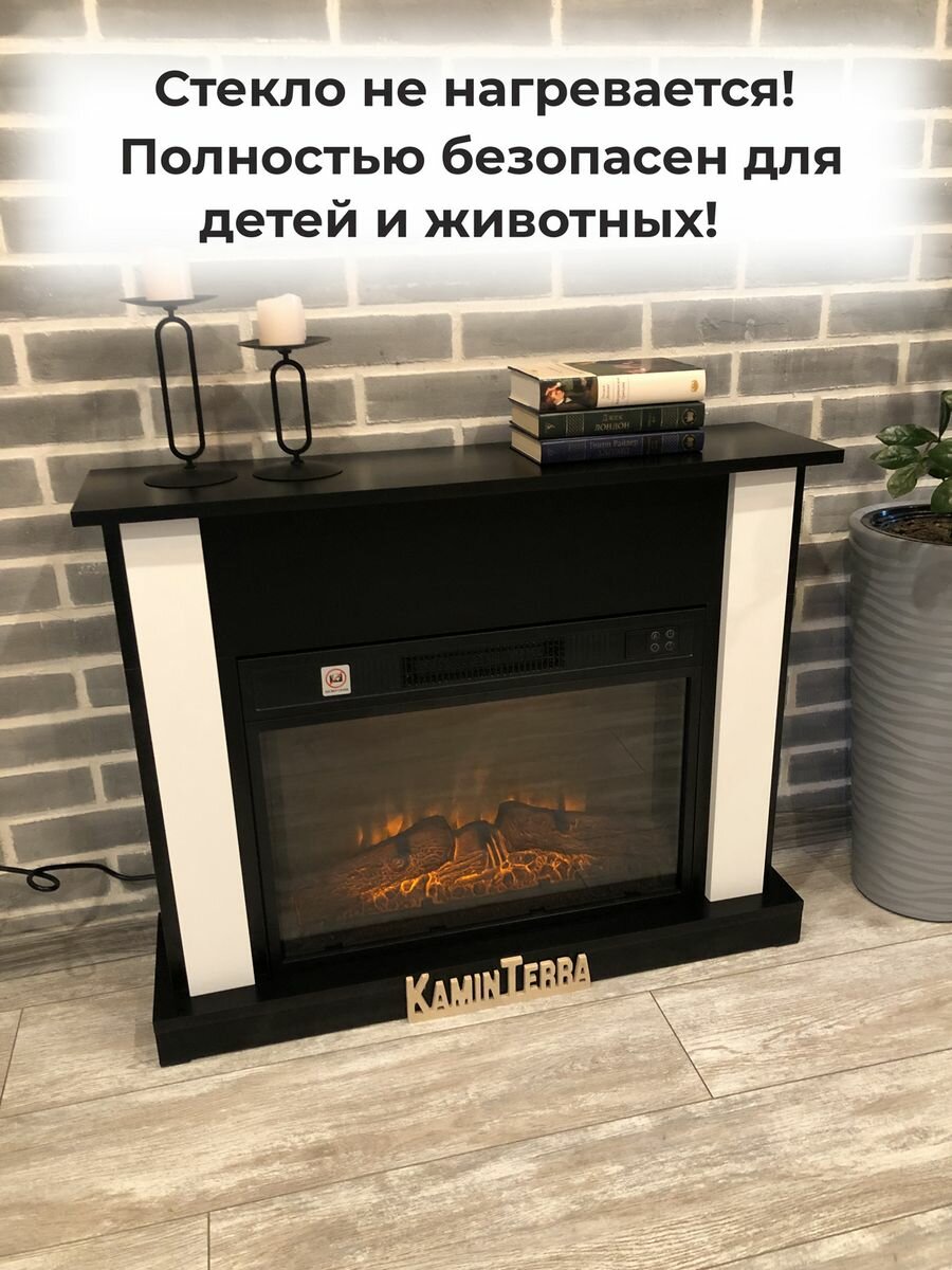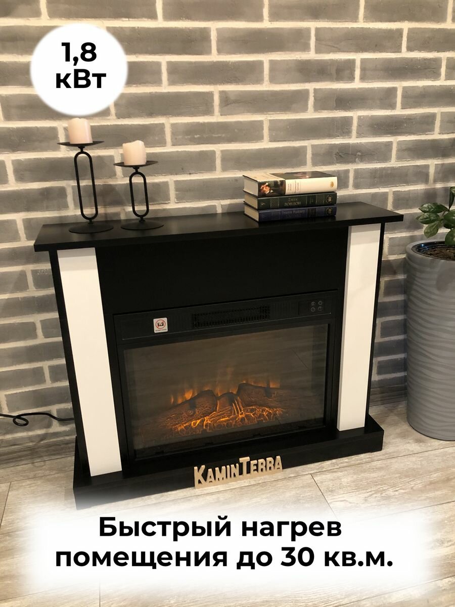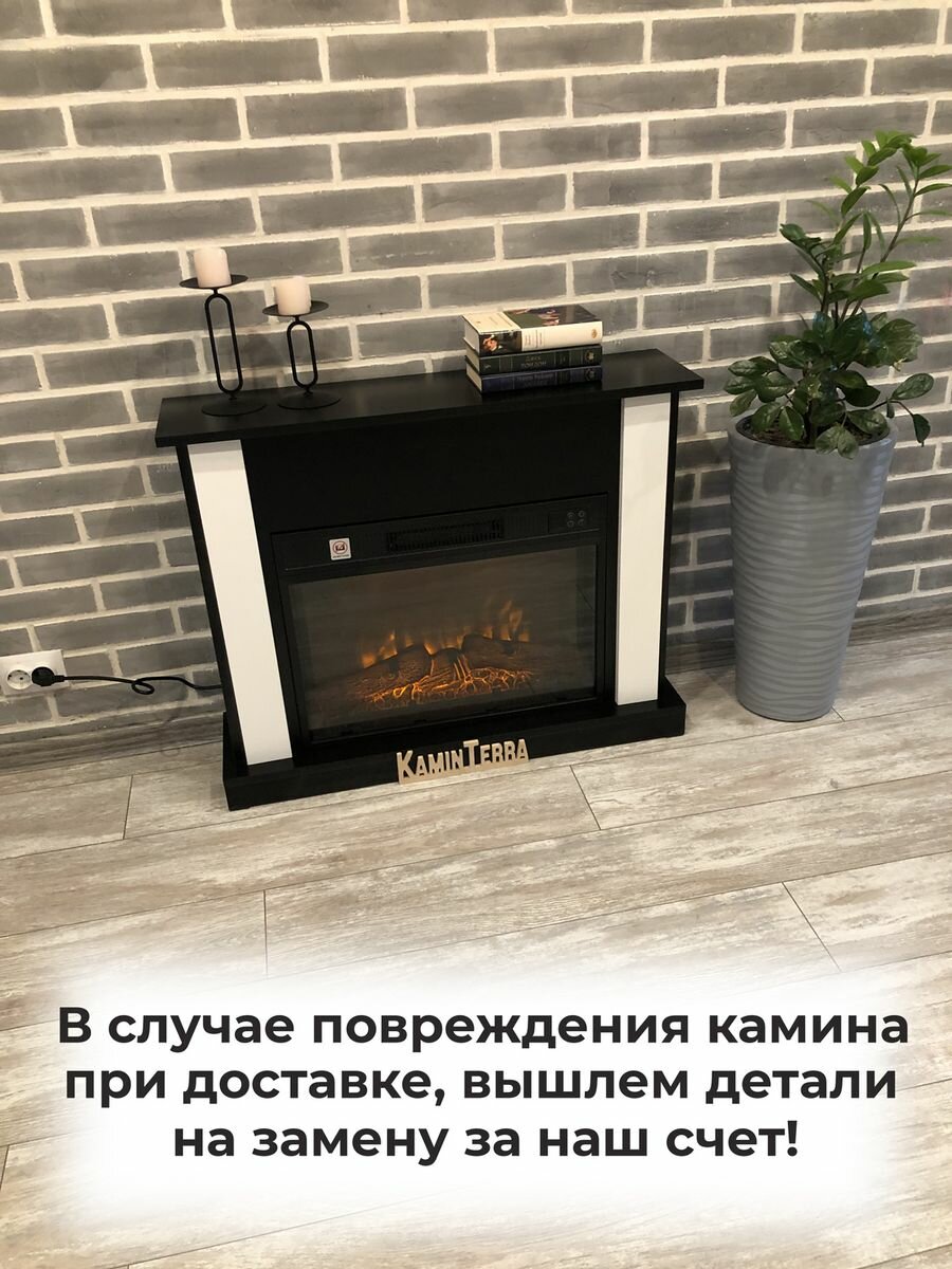 Камин электрический белый с обогревом и звуком KaminTerra Турин Белый