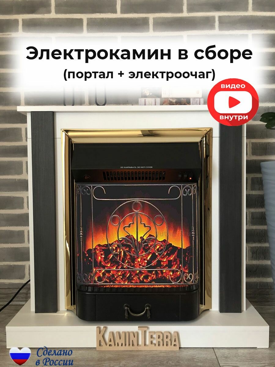 Камин электрический с обогревом и звуком KaminTerra Турин Крем