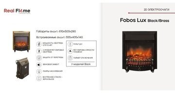 Электрокамин Fobos Lux Brass (золото) (звуковой эффект, дистанционное управление) интересное: