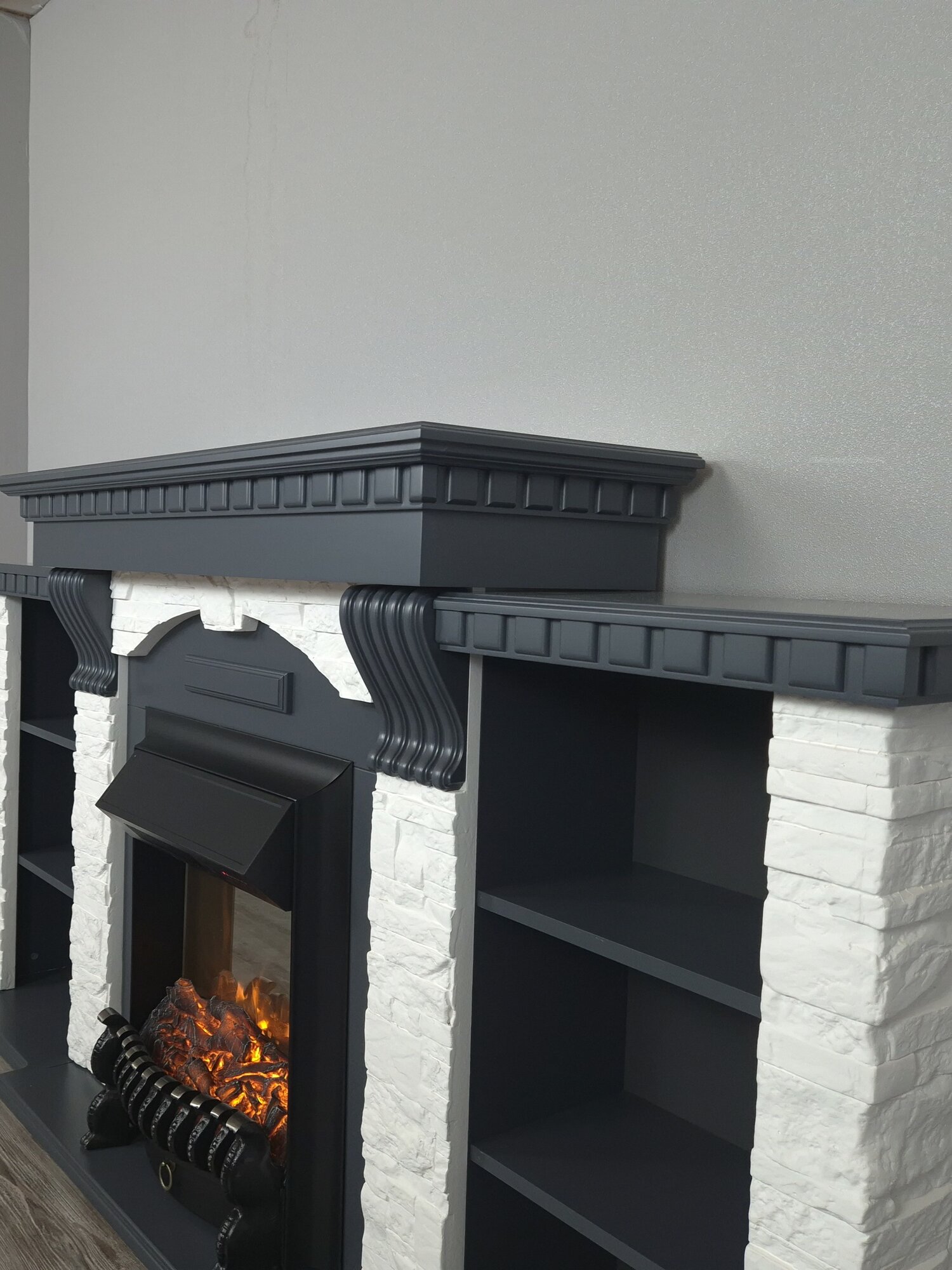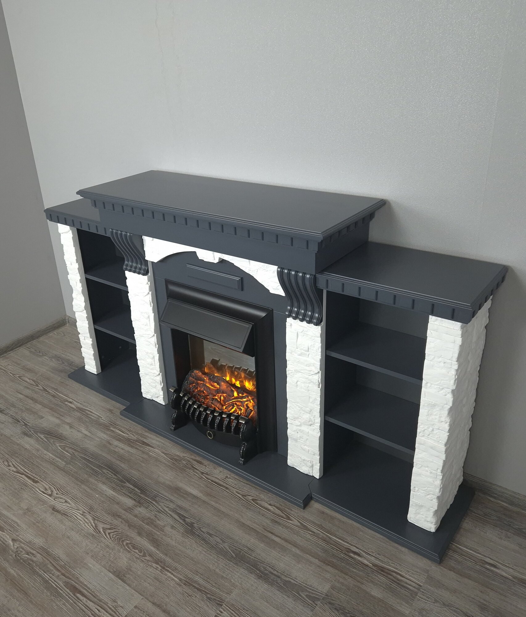 СохранитьКамин электрический с тумбами Дублин очаг Fobos, графит/белый, напольный с обогревом. Электрокамин интересное: