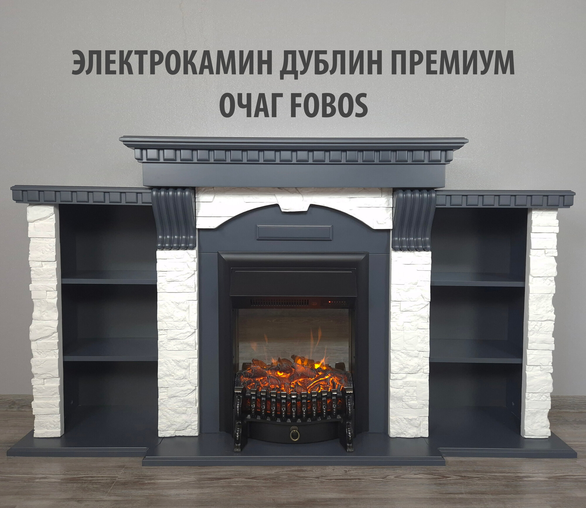 Купить Камин электрический с тумбами Дублин очаг Fobos, графит/белый, напольный с обогревом. Электрокамин