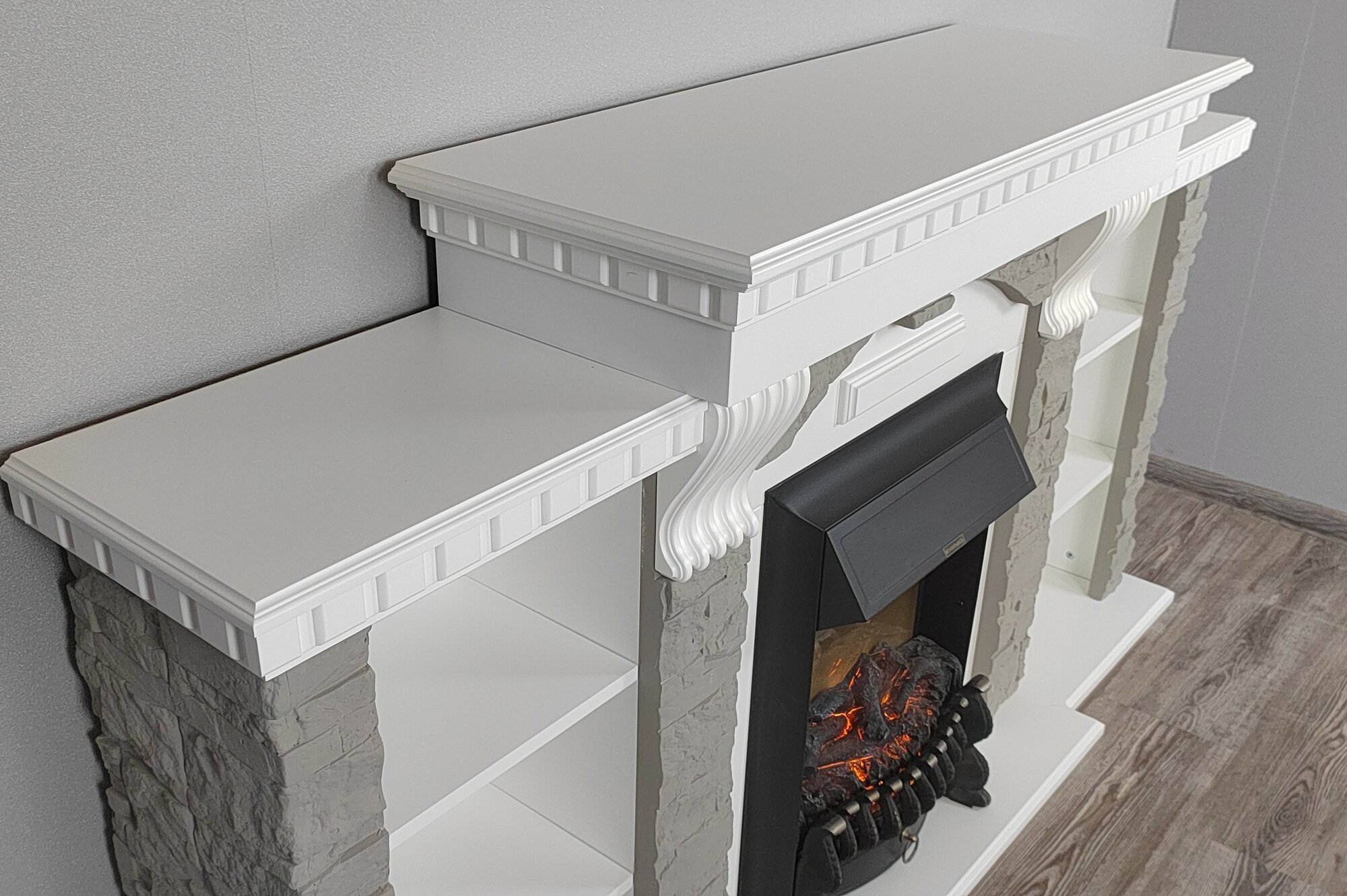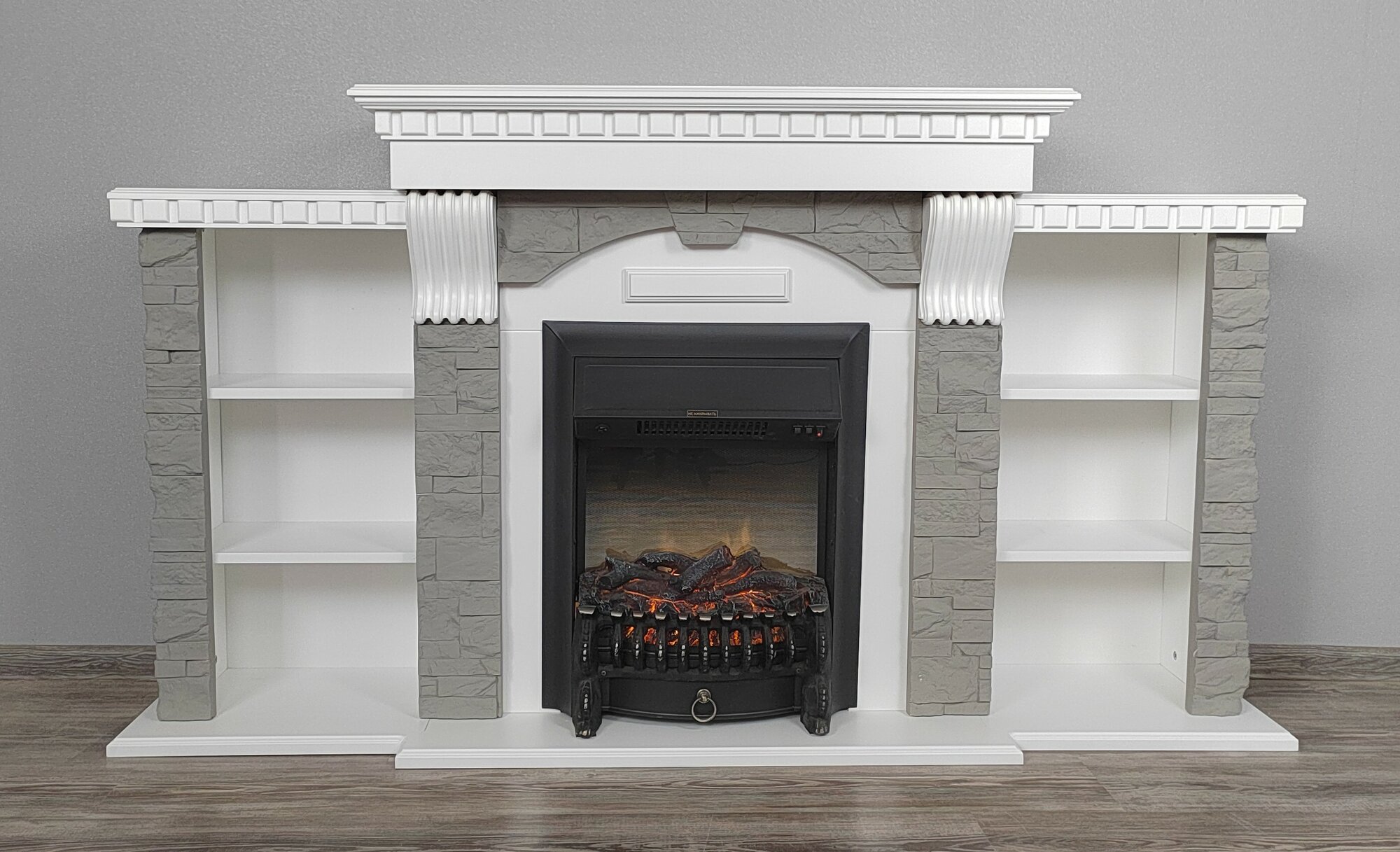 СохранитьКамин электрический с тумбами Дублин очаг Fobos, белый/серый, напольный с обогревом и имитацией пламени / электроочаг интересное: