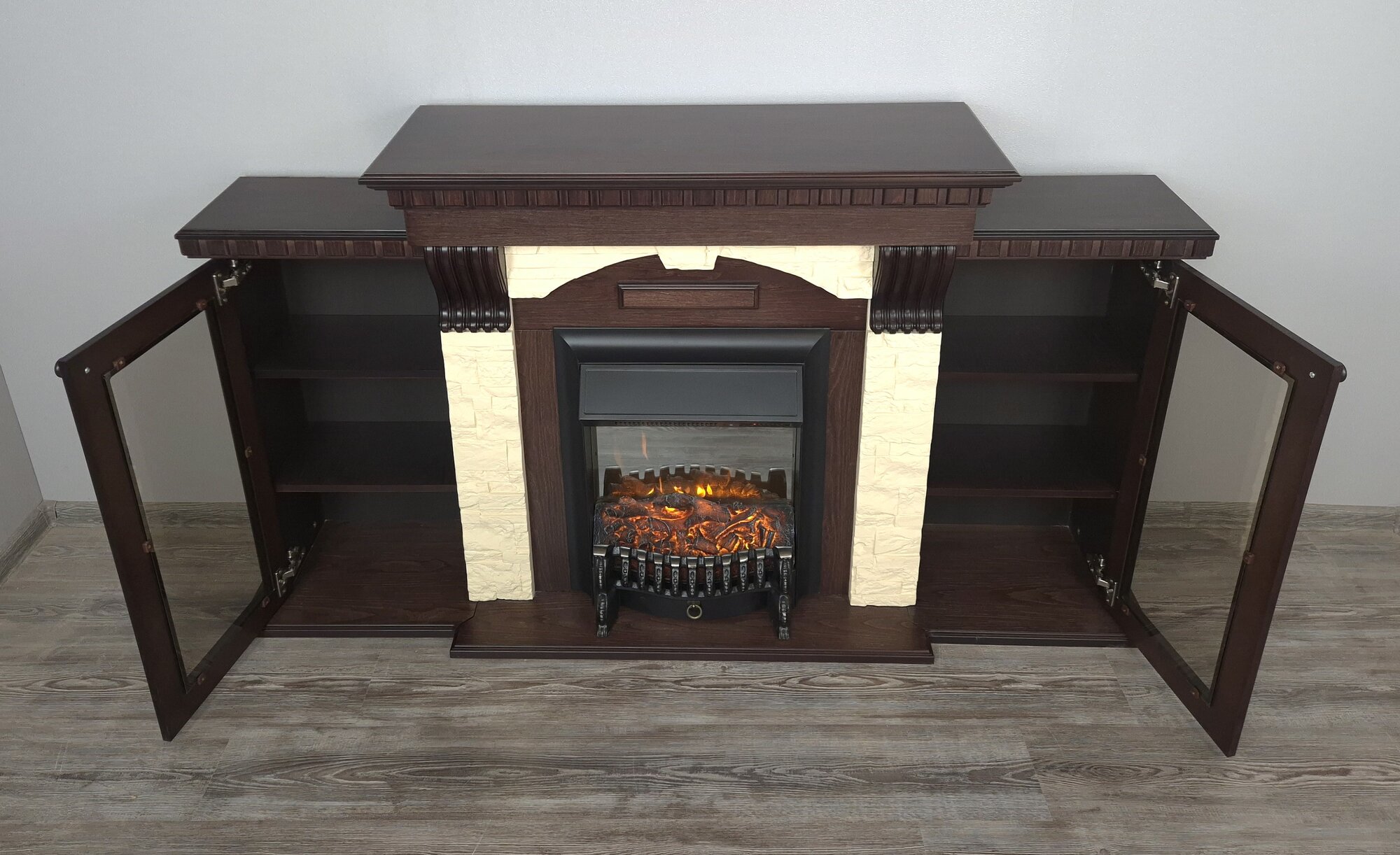 СохранитьКамин электрический Дублин с тумбами + дверки очаг Fobos Венге/беж, напольный с обогревом. Электрокамин интересное:
