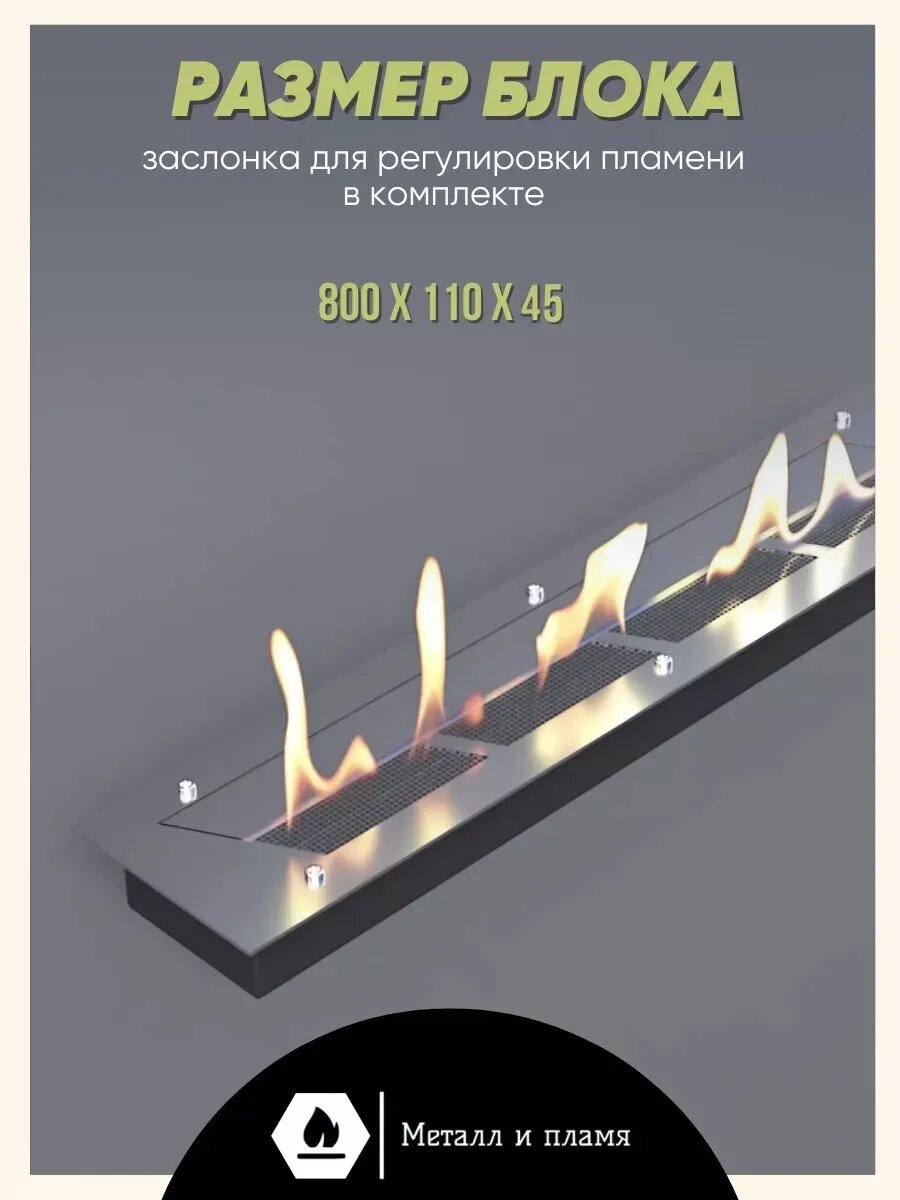 Купить Биокамин Металл и Пламя "Премиум 750", встраиваемый, нержавеющая сталь, 80см х 40см