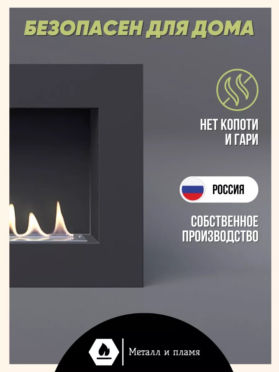 Биокамин Металл и Пламя "L 800-400V", сталь, встраиваемый, чёрный