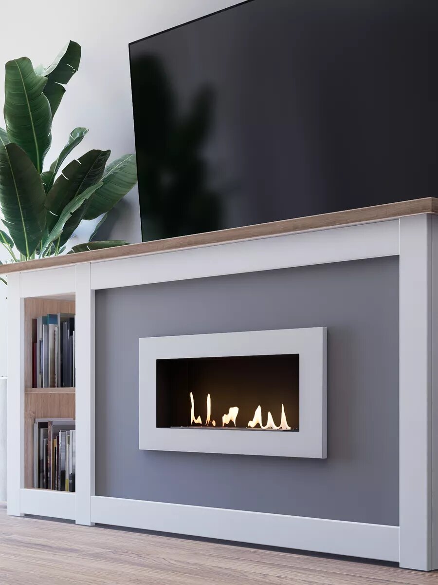 Купить Биокамин Металл и Пламя "B 900V", сталь, встраиваемый, глубина 14см, белый