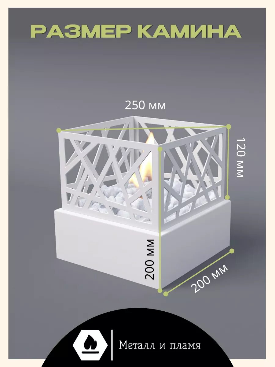 Биокамин Subor "Бруклин", настольный, декоративный, стальной, белый, 20х20х20 см интересное: