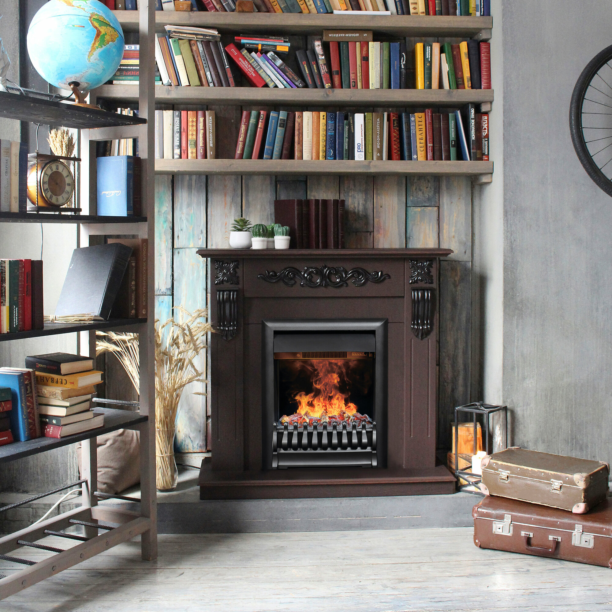 Электрокамин Sorento коричневый МДФ с очагом Majestic, звук потрескивания дров, обогрев, имитация пламени