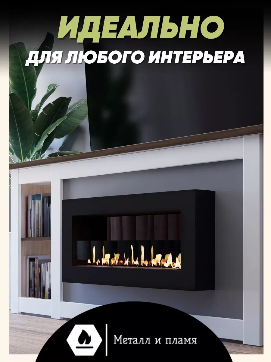 Встраиваемый биокамин от Металл и пламя "Премиум 1100V", 2 стекла в комплекте, регулировка пламени, сталь