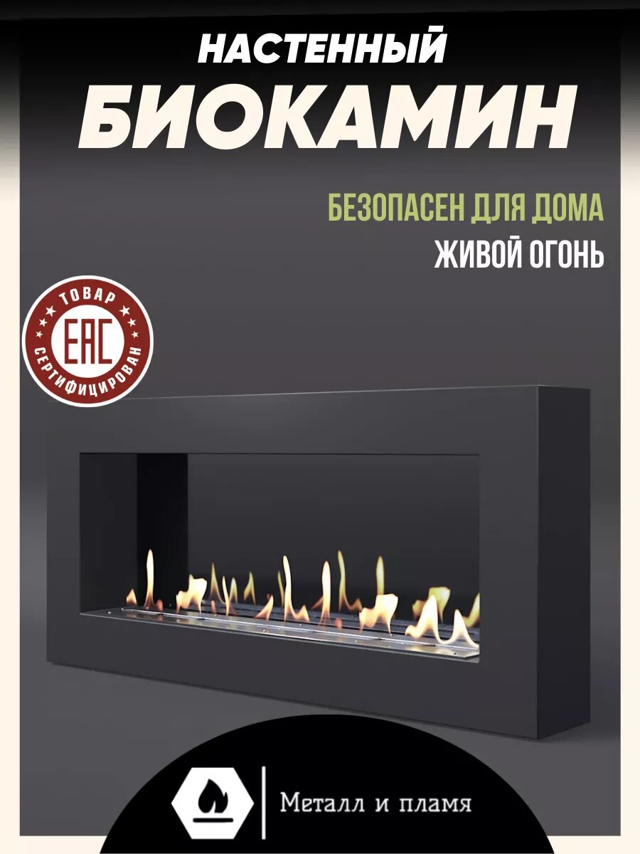 Встраиваемый биокамин от Металл и пламя "Премиум 1100V", 2 стекла в комплекте, регулировка пламени, сталь
