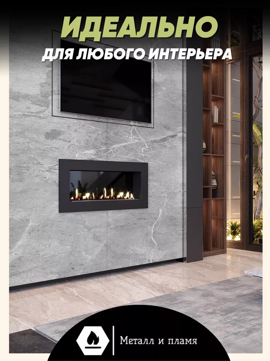Встраиваемый биокамин от Металл и пламя "Премиум 1100V", 2 стекла в комплекте, регулировка пламени, сталь