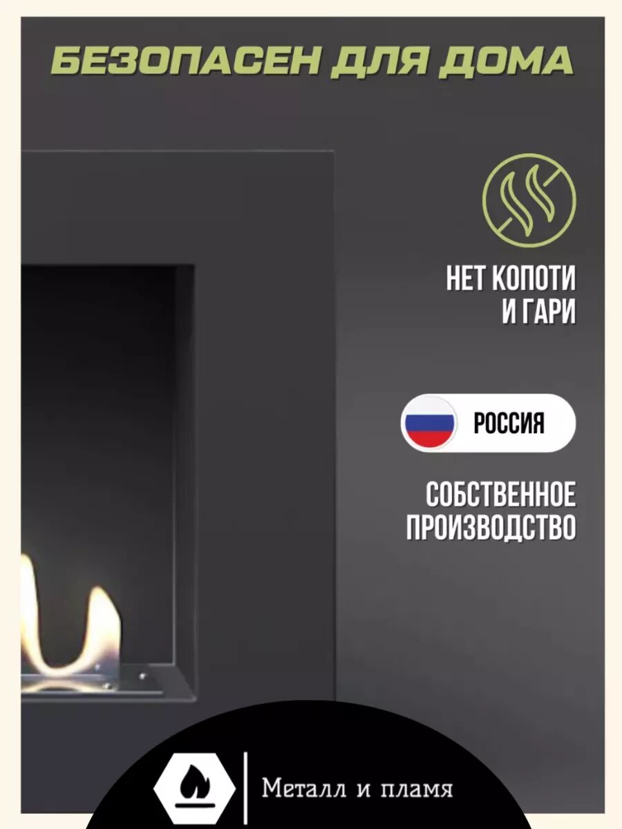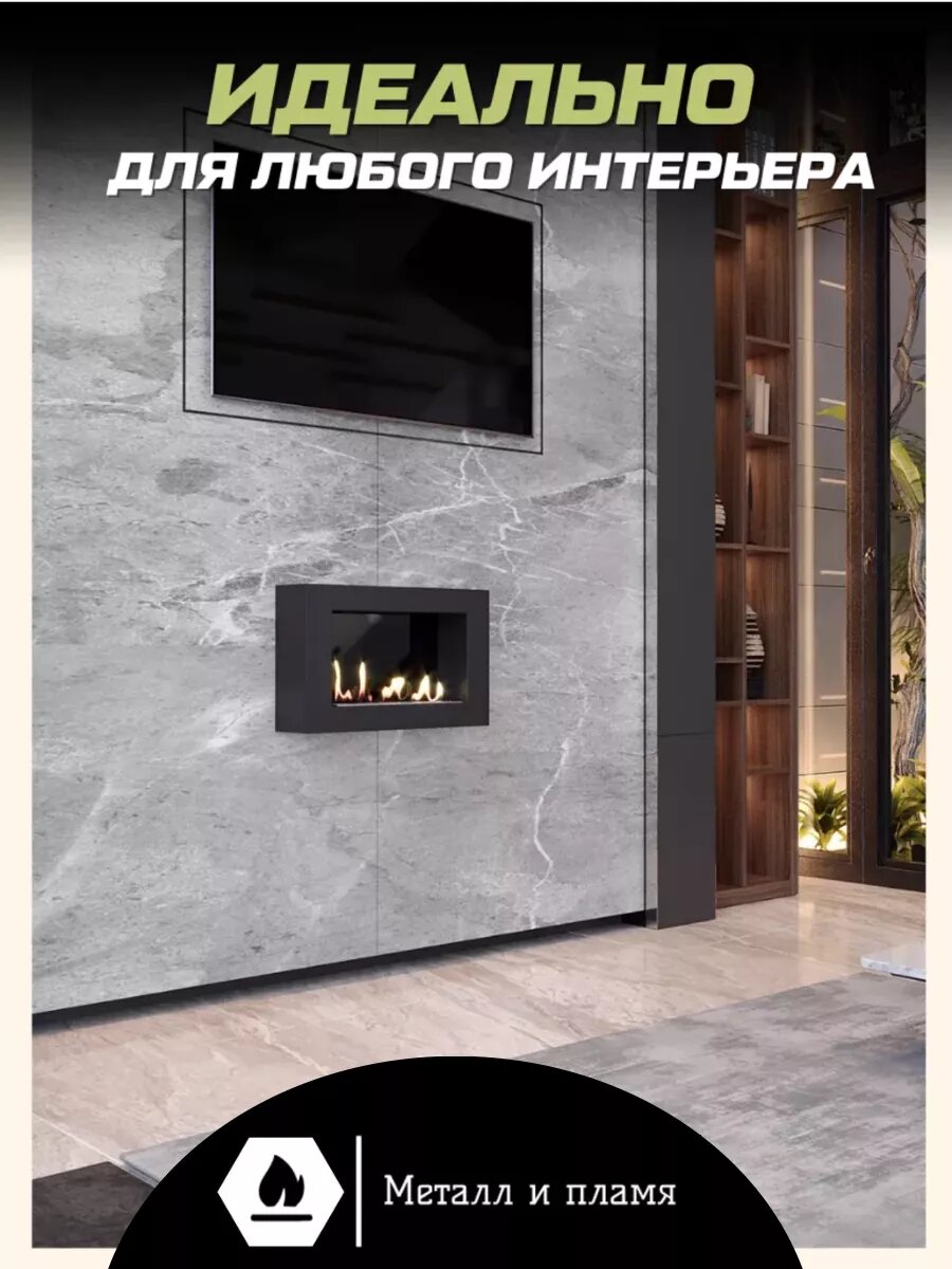 Встраиваемый биокамин от Металл и пламя "Премиум 1100V", 2 стекла в комплекте, регулировка пламени, сталь