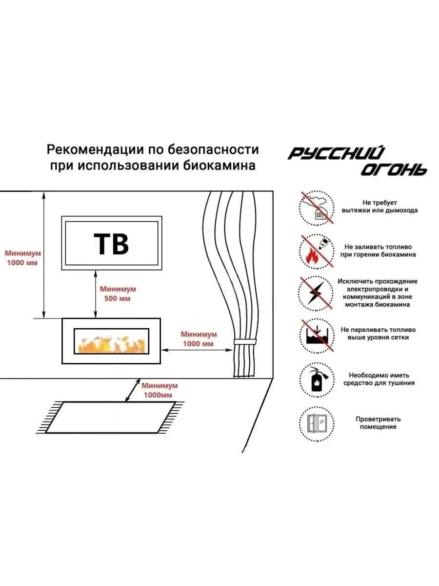 Настенный биокамин "Премиум 1100N", напольный, защитное и декоративное стекло в комплекте, топливный блок с регулировкой