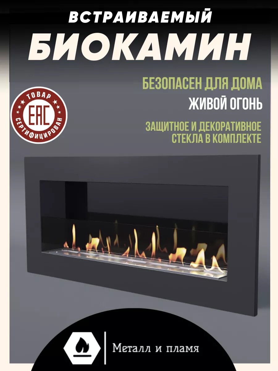 Встраиваемый биокамин от Металл и пламя "Премиум 1100V", 2 стекла в комплекте, регулировка пламени, сталь