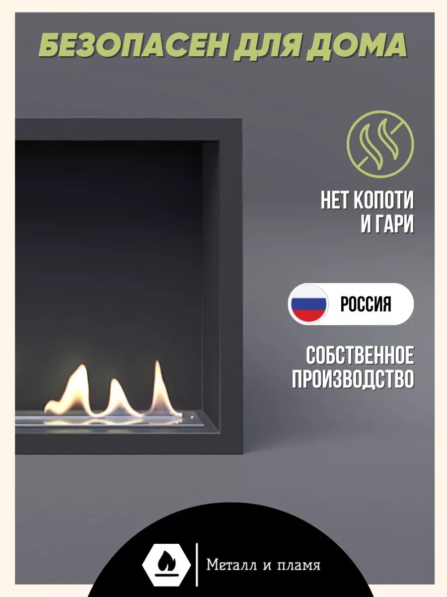 Встраиваемый биокамин от Металл и пламя "Премиум 1100V", 2 стекла в комплекте, регулировка пламени, сталь