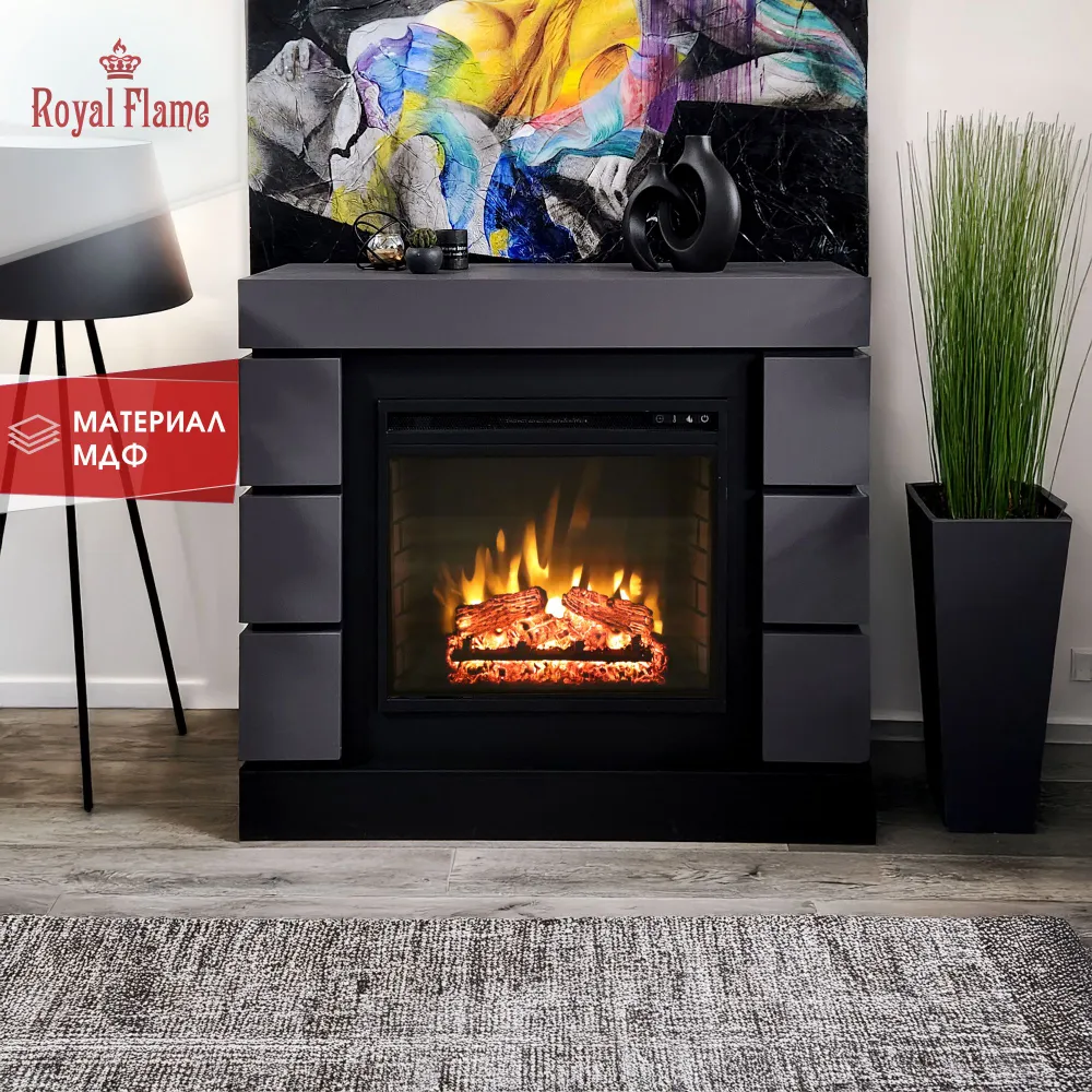 Электрокамин RoyalFlame Modern серый графит с очагом Vision 23, звуковые эффекты, обогрев, пульт ду интересное: