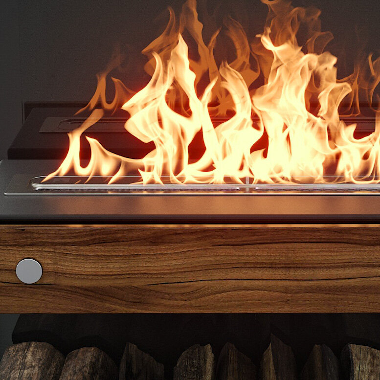 Купить Биокамин напольный LuxFire "Пятница W", вертикальный, 800 мм, дизайнерский, дровница, дрова, огнебиозащита, от 18 м2.