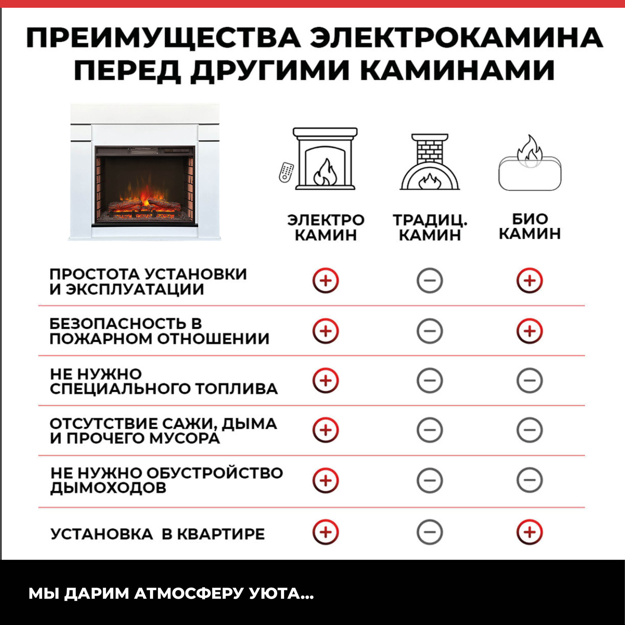 Электрокамин RealFlame Salto белый МДФ c Evrika 25,5, панорамное стекло, обогрев, звуковой эффект, пульт ду