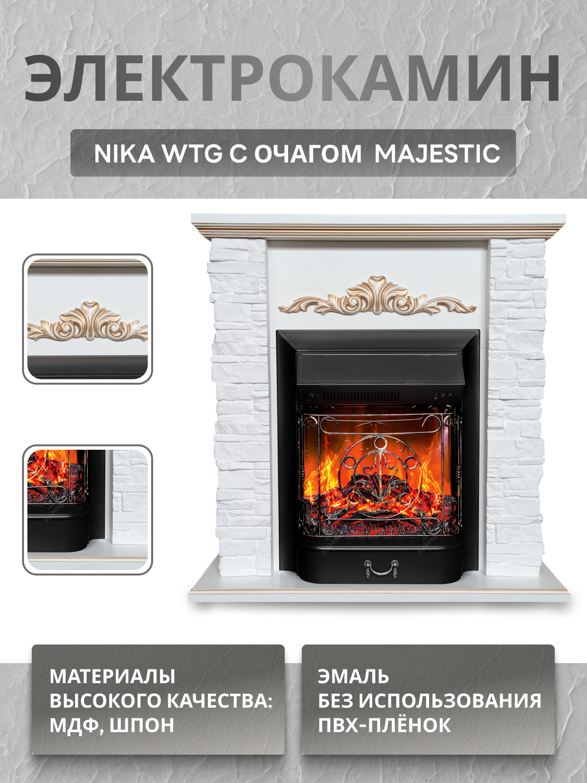Электрокамин Nika WT с очагом Majestic Lux Black, обогрев, звуковые эффекты (камин электрический) интересное: