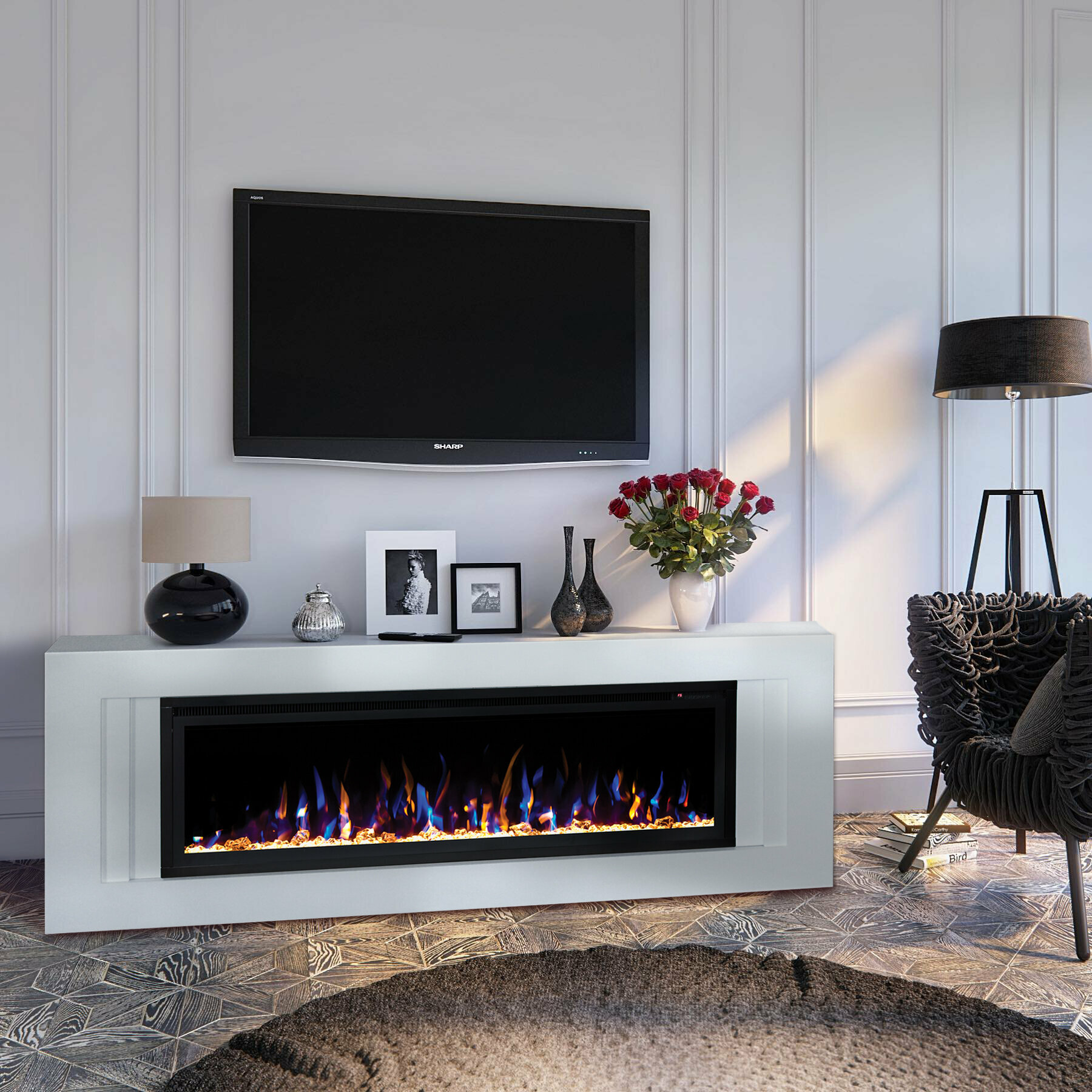 Купить Электрокамин Modern белый МДФ, стильный камин с имитацией пламени, пульт ДУ, звуковой эффект