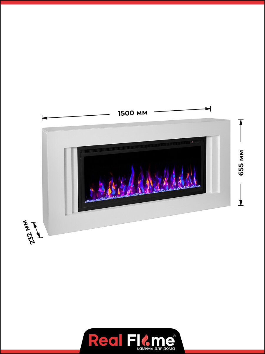 Электрокамин Modern 42 белый МДФ, стильный камин с имитацией пламени, пульт ДУ, звуковой эффект
