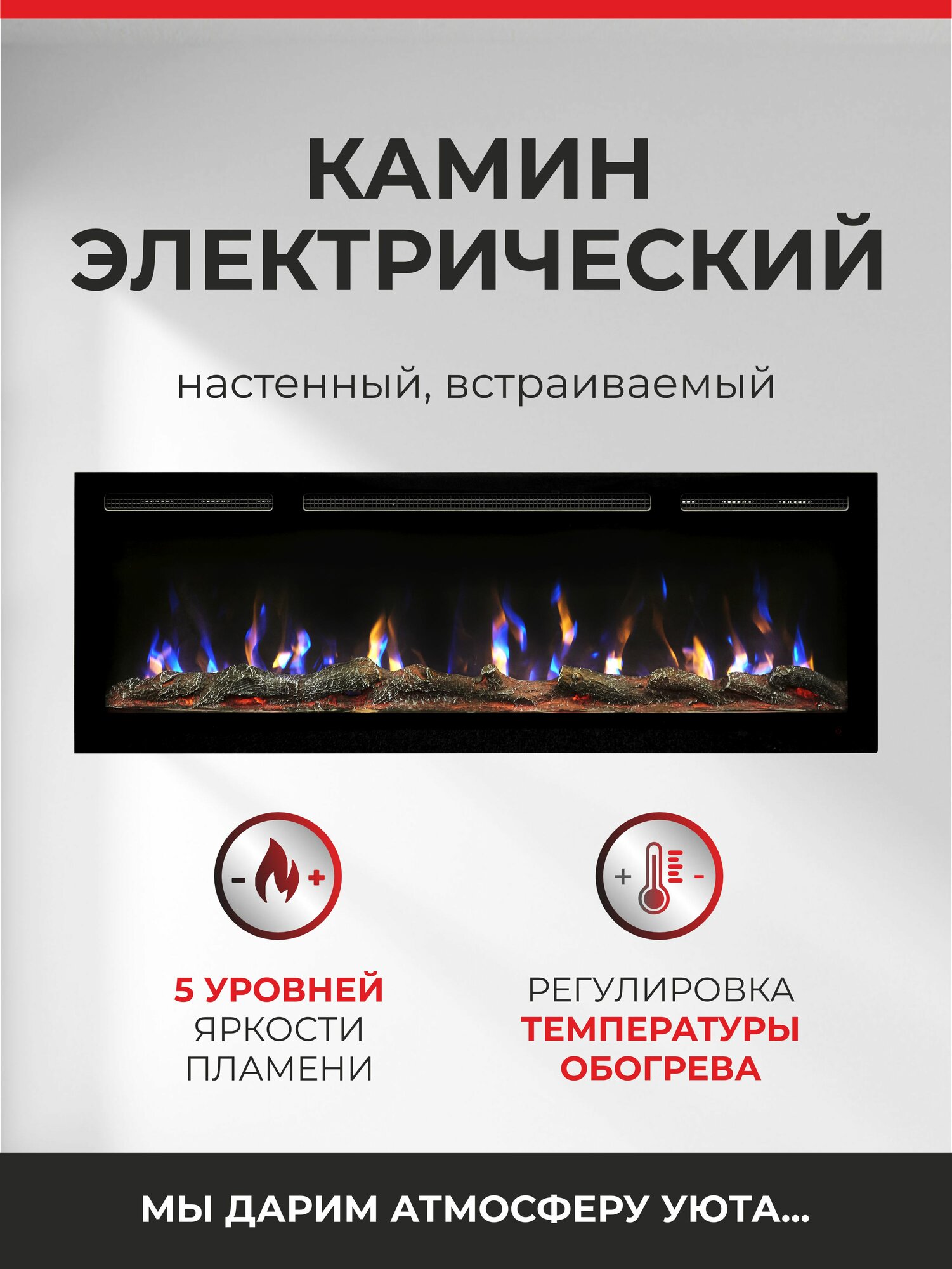 Камин электрический Fires Merlin Rio 40, звуковой эффект, встраиваемый, имитация пламени, без обогрева