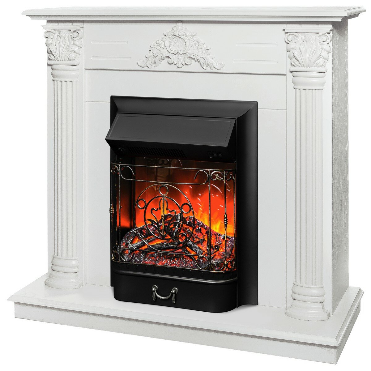 Купить Электрокамин Stefania WT с очагом Majestic Lux Black, белое золото, звук потрескивания дров, обогрев