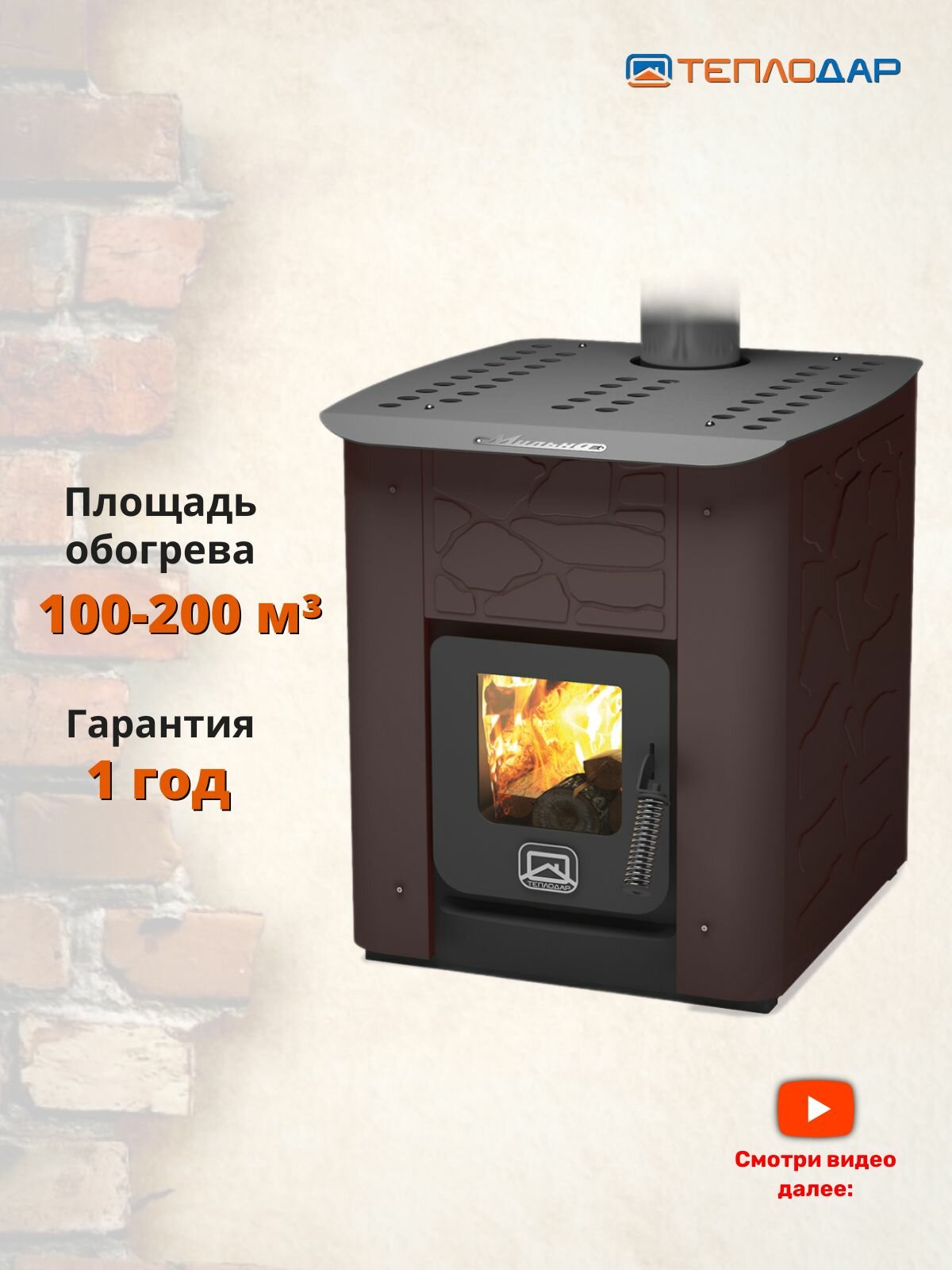 Печь отопительная Теплодар Мильна - 200. Дровяная печь для большой бани, гаража и дома, 100-200 м3 интересное: