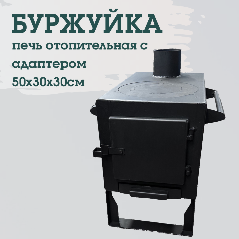 Печь "Буржуйка", сталь, 50x30x30 см, 4мм, с адаптером, черная интересное: