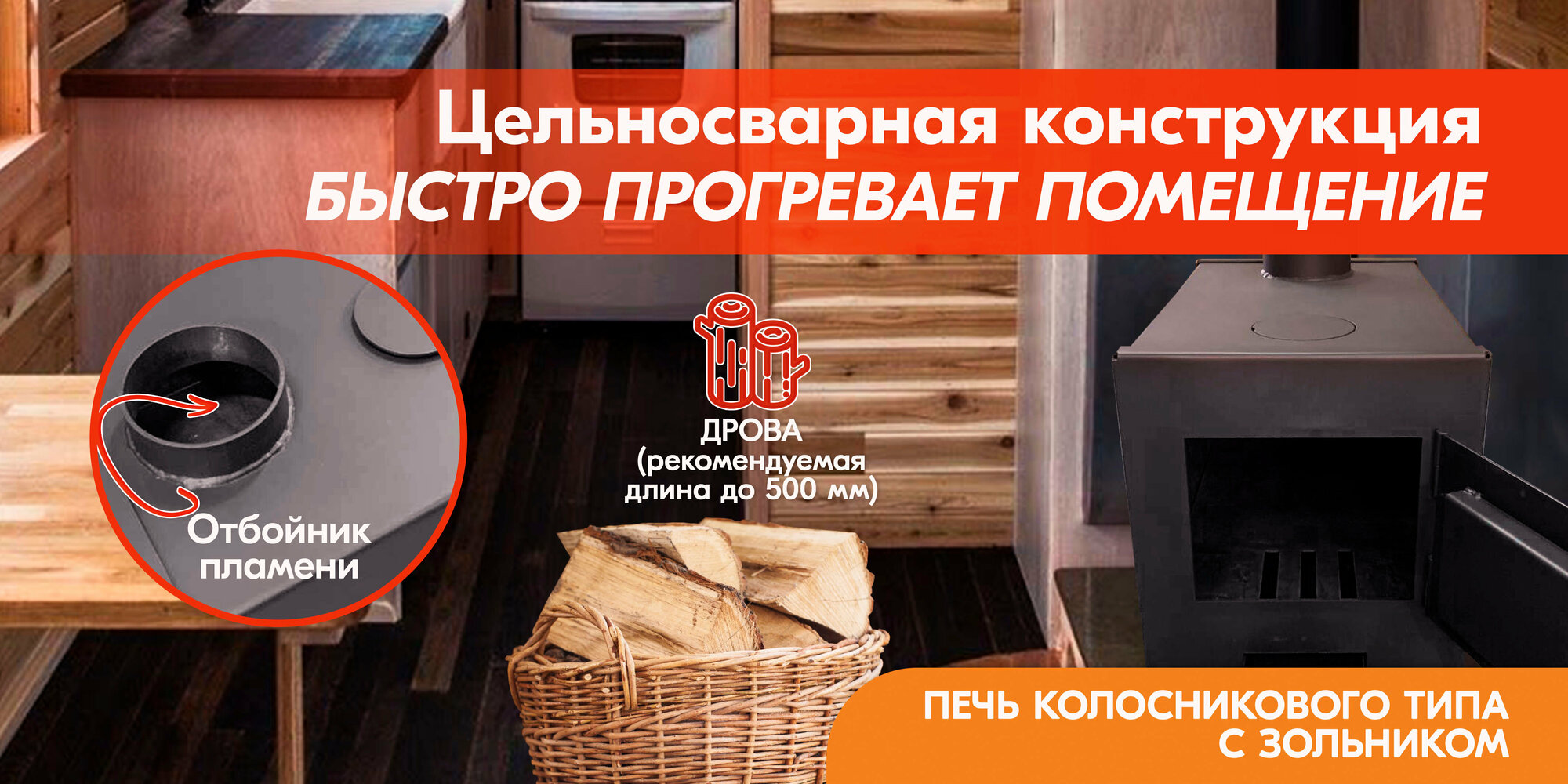 Дровяная банная печь Берёзка Скандинавия Элит 24