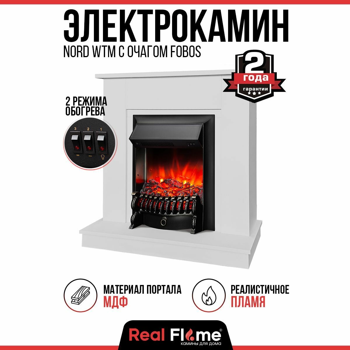 Купить Электрический камин RealFlame Nord белый МДФ с очагом Fobos, звук потрескивания дров, обогрев, имитация пламени