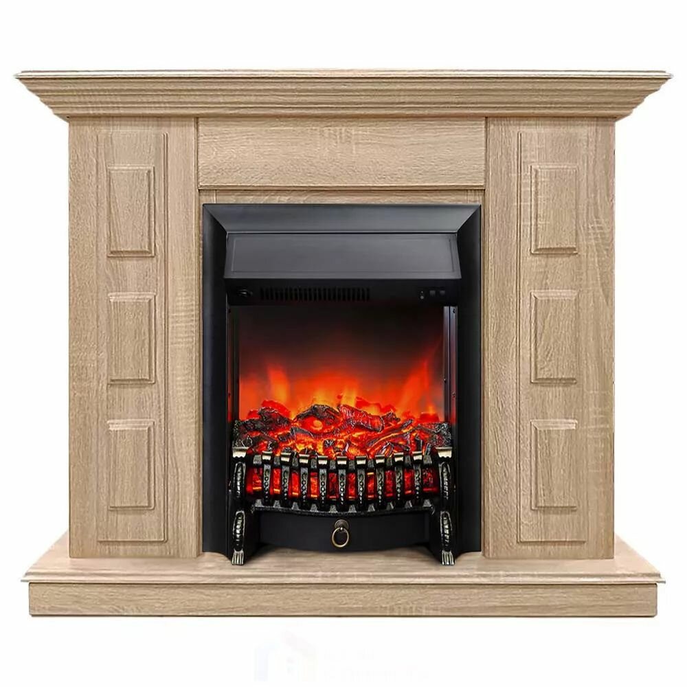 Купить Камин электрический хорошие камины Юпитер бежевый с очагом Fobos Lux Black, с обогревом и звуком потрескивания дров