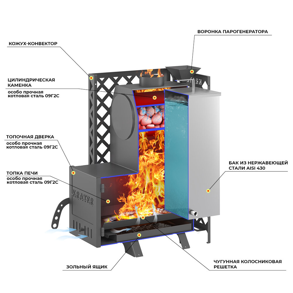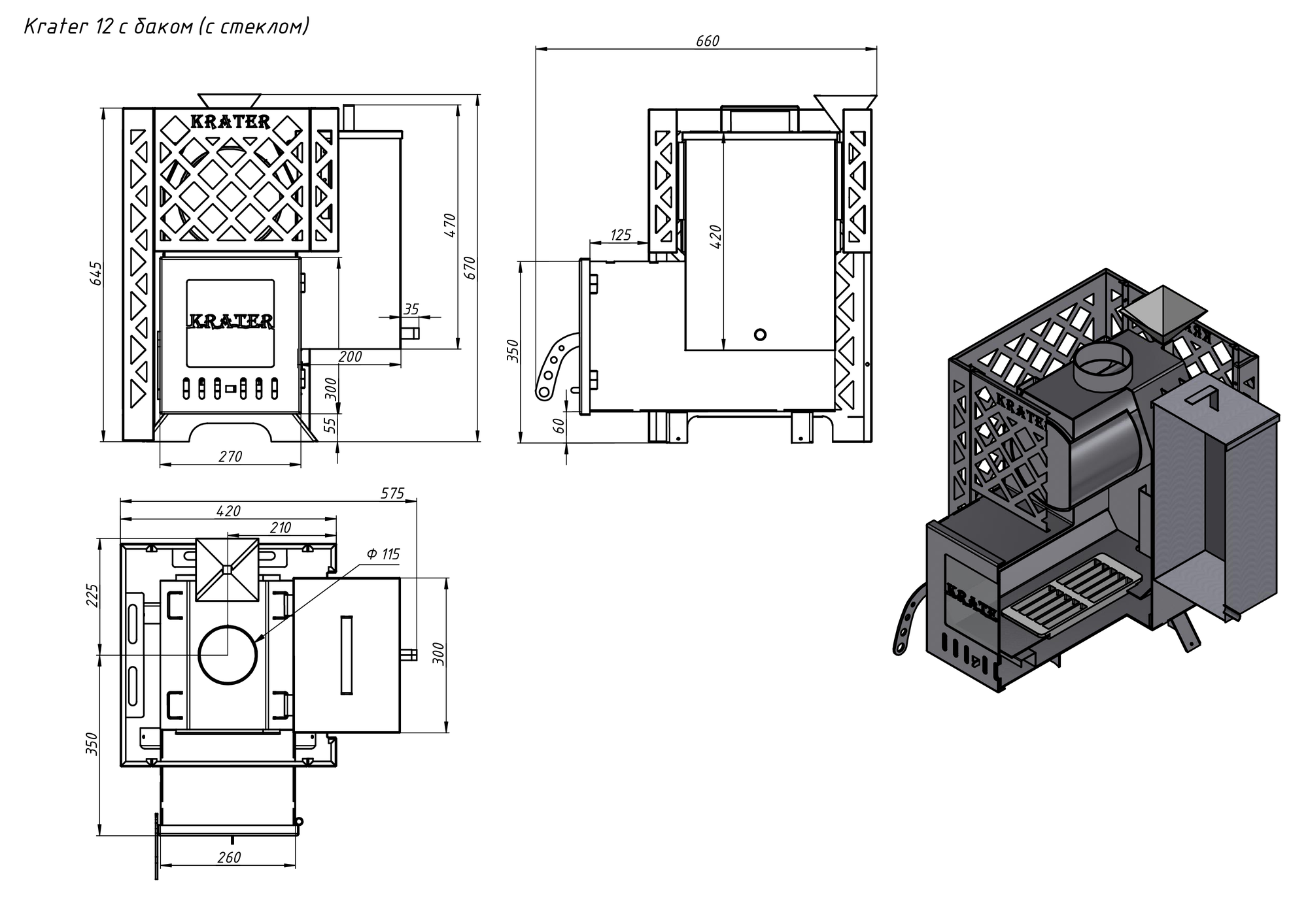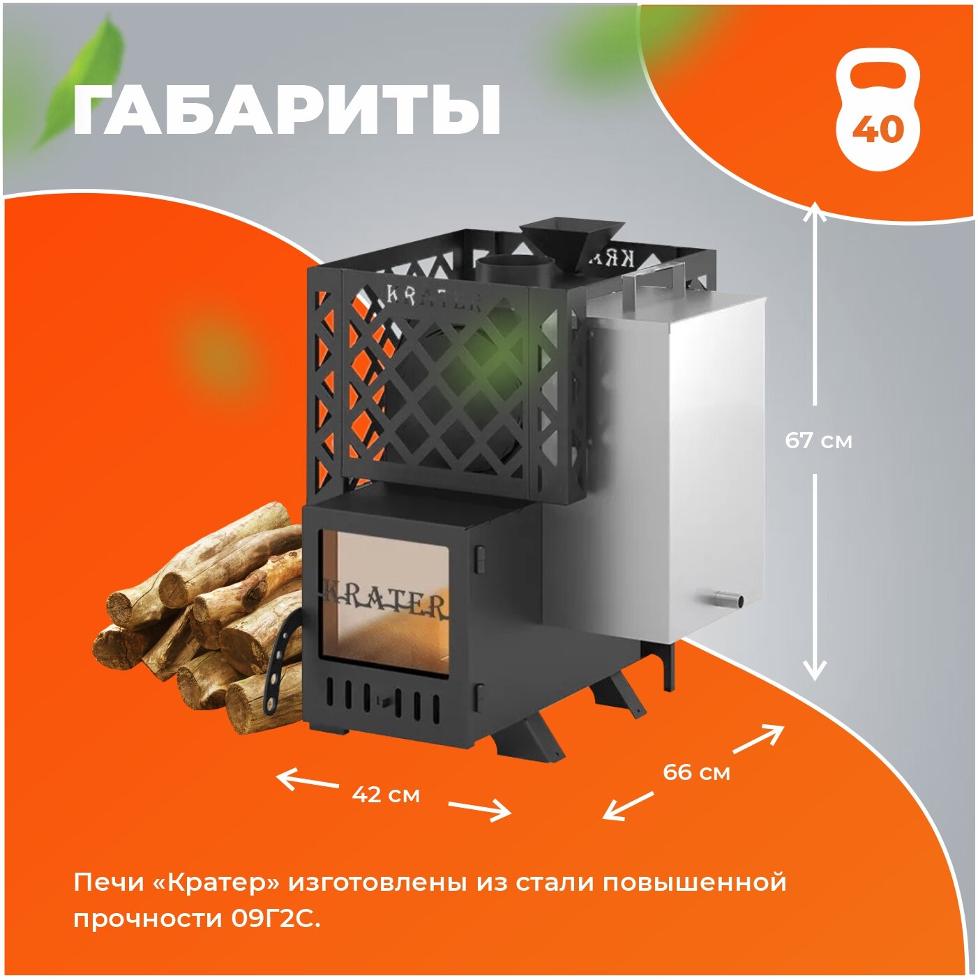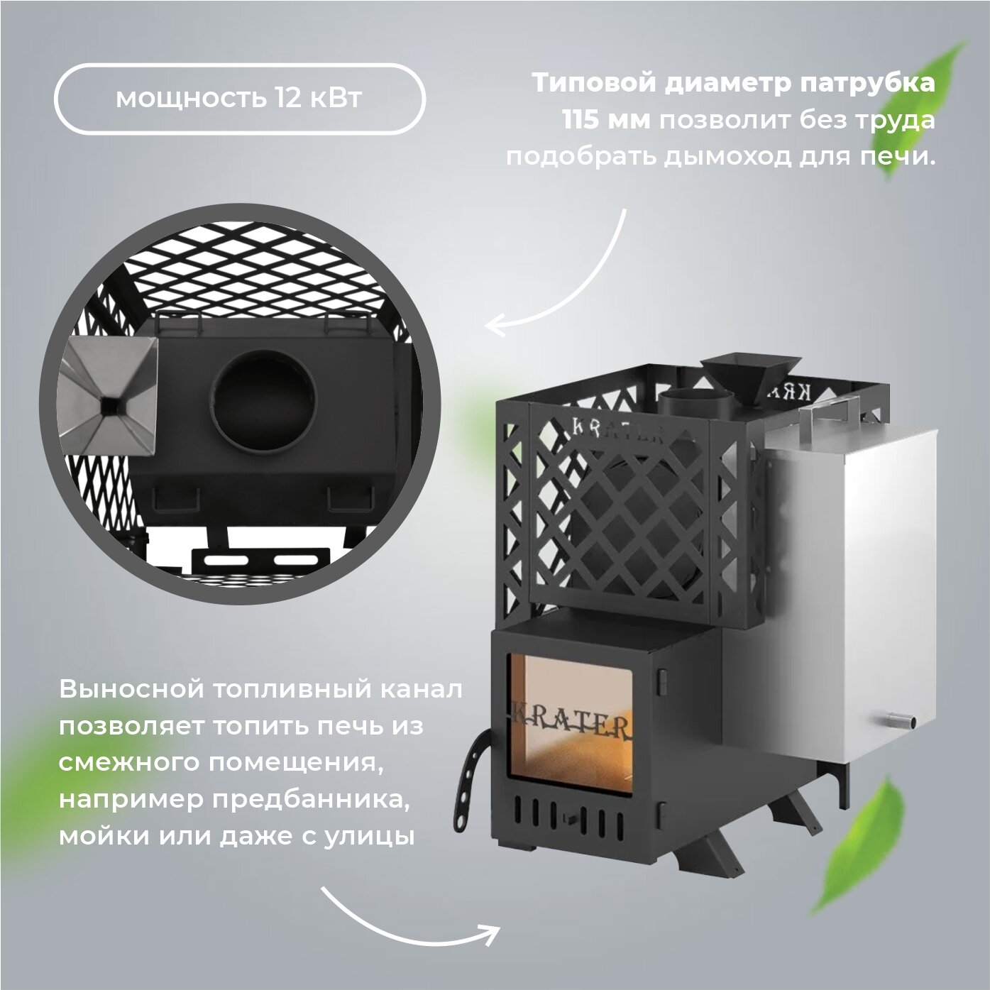 Печь для бани дровяная "Кратер 12С" бак диаметр дымохода 115 интересное: