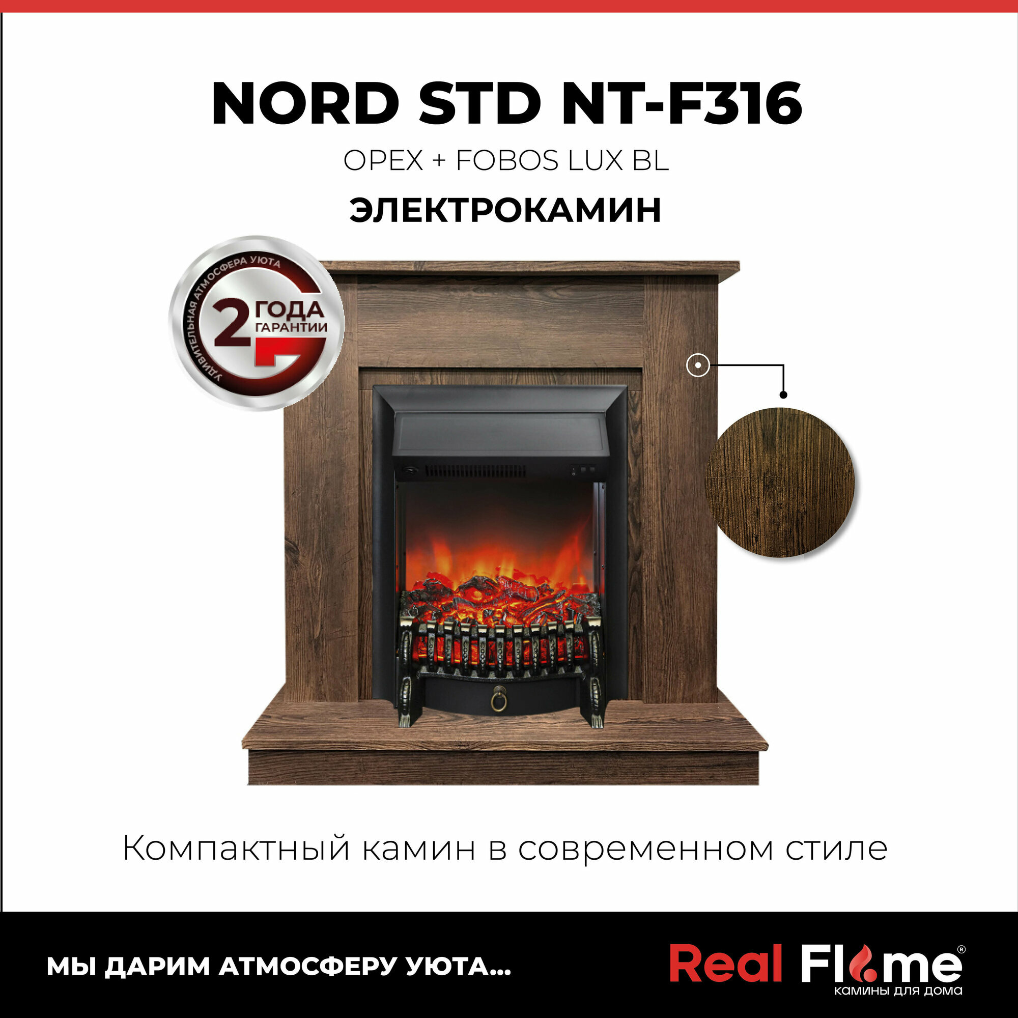 СохранитьЭлектрокамин RealFlame Nord коричневый МДФ с очагом Fobos, напольный камин с обогревом, имитация пламени и звука интересное: