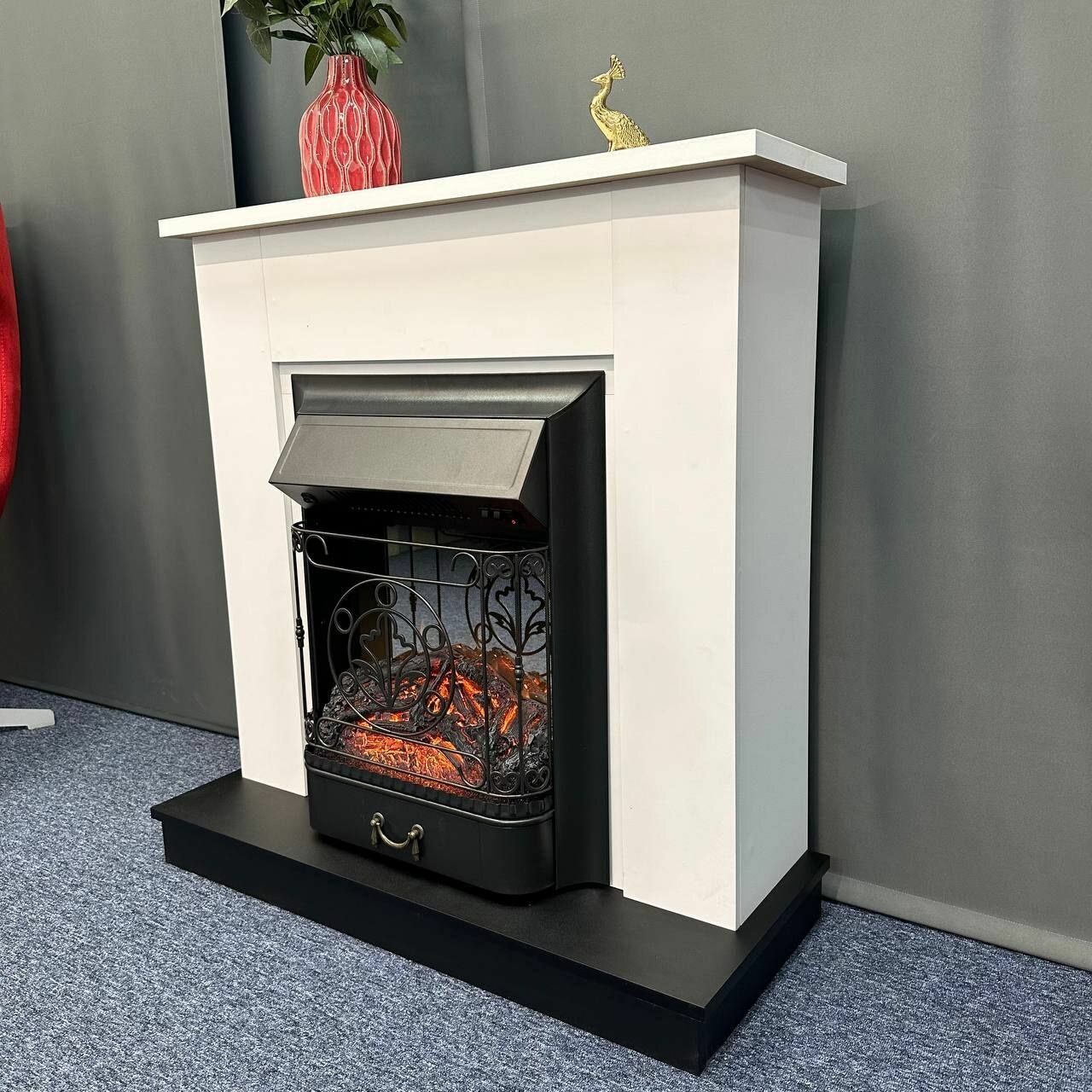 Электрический камин RealFlame Nord бело черный матовый МДФ с очагом Majestic, звук, обогрев, имитация пламени, пульт