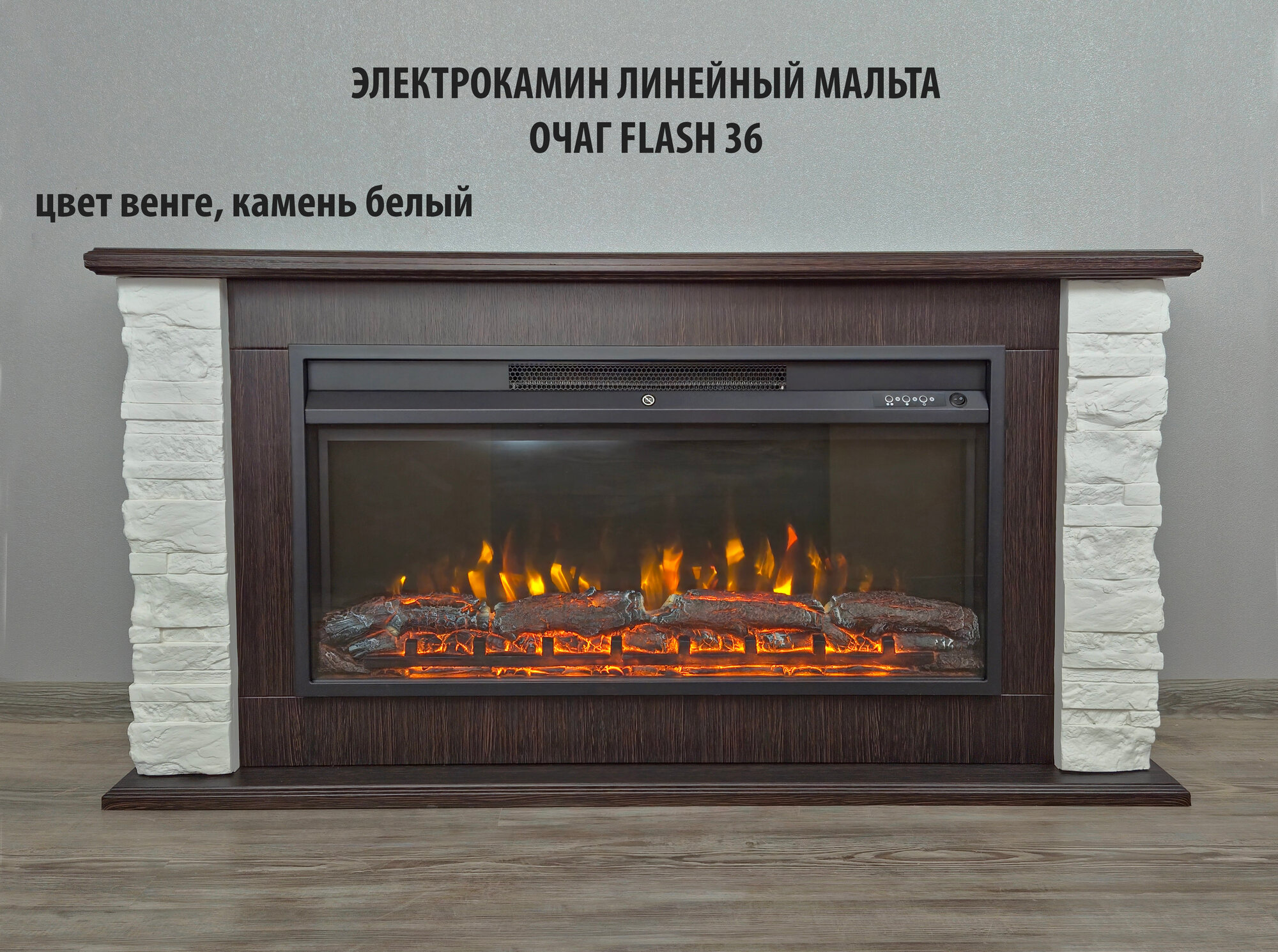Камин электрический линейный Мальта очаг Flash36, напольный с обогревом, пультом и имитацией пламени, электрокамин интересное: