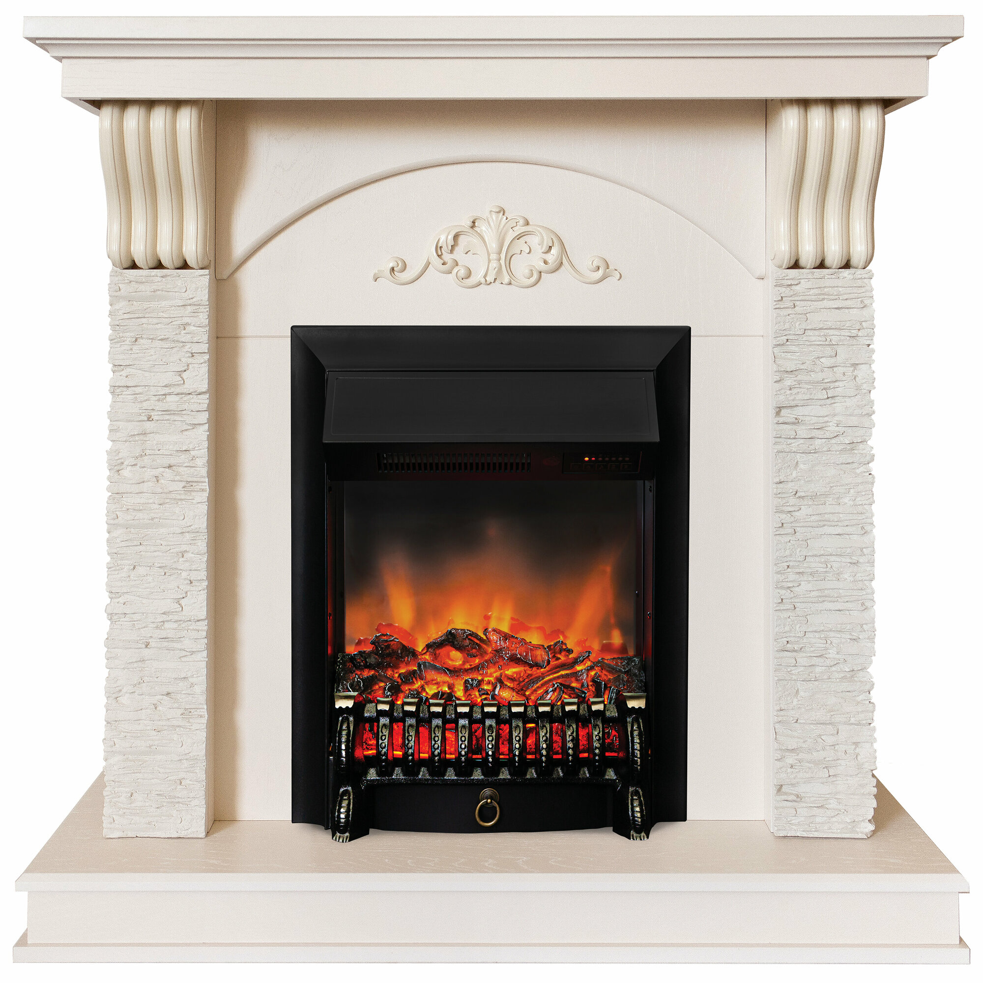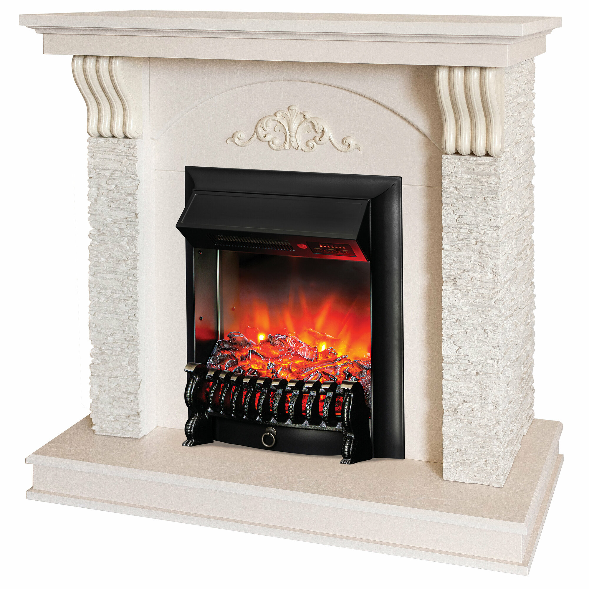Электрокамин RealFlame Corfino бежевый МДФ с очагом Majestic, звук потрескивания дров, обогрев, имитация пламени, пульт