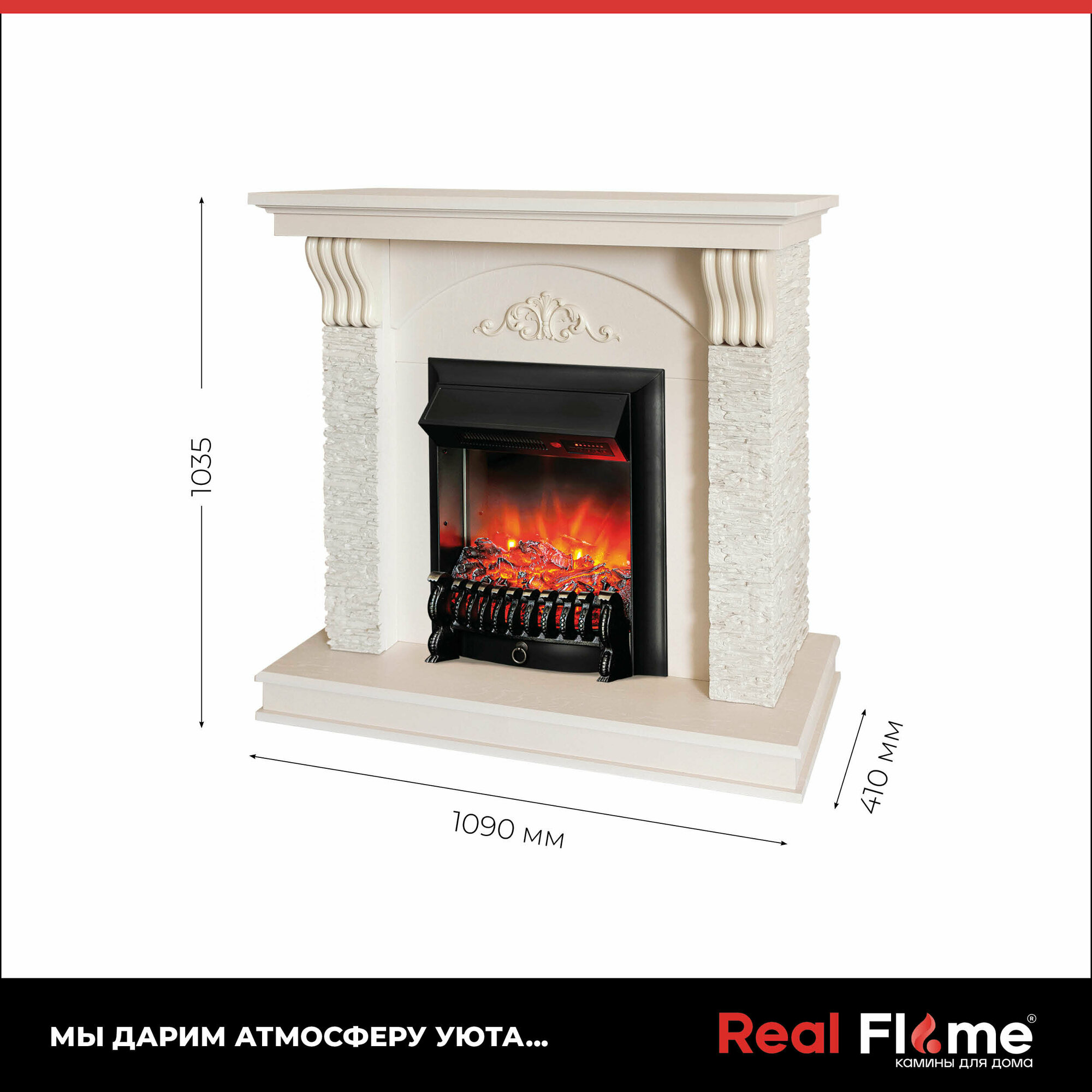 Купить Электрокамин RealFlame Corfino бежевый МДФ с очагом Fobos, звуковая имитация, пульт ДУ, обогрев