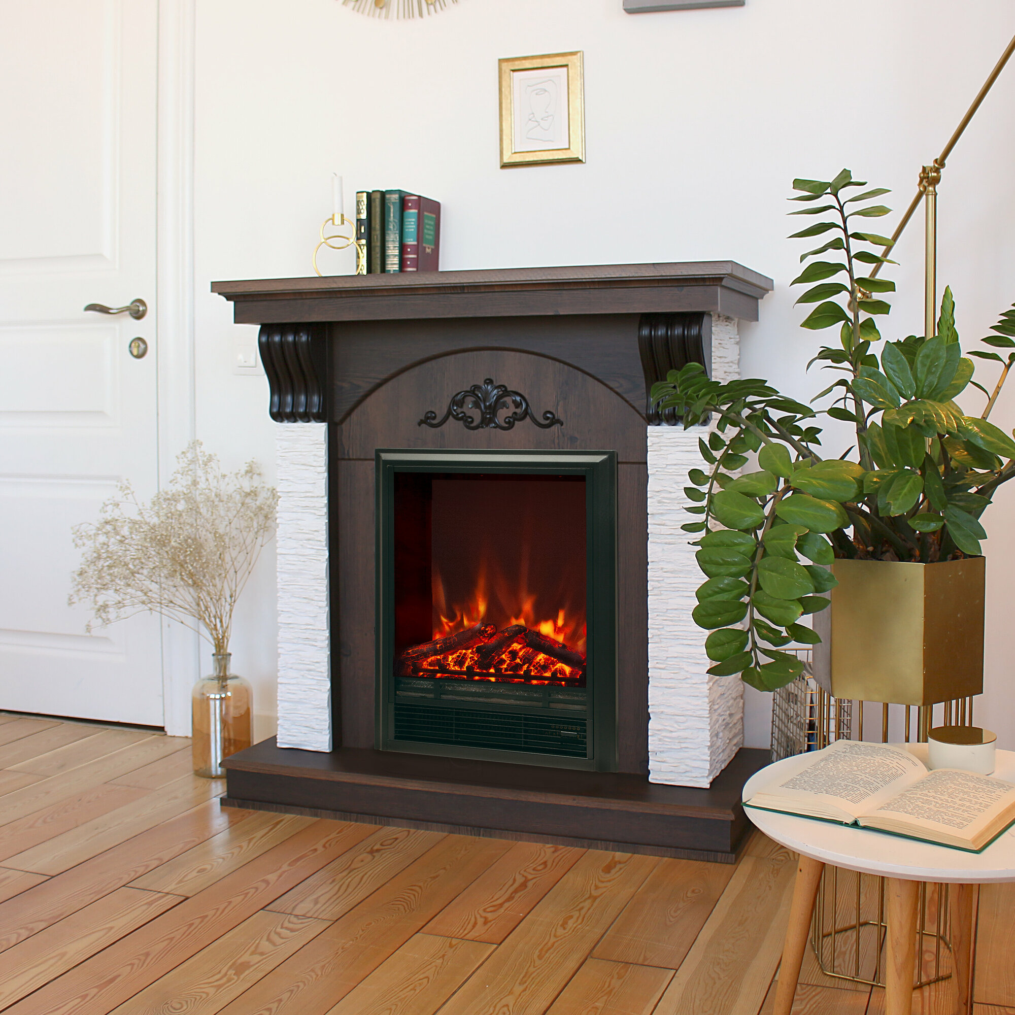 Электрический камин RealFlame Corfino коричневый МДФ с имитацией пламени и защитой от перегрева с очагом Fobos