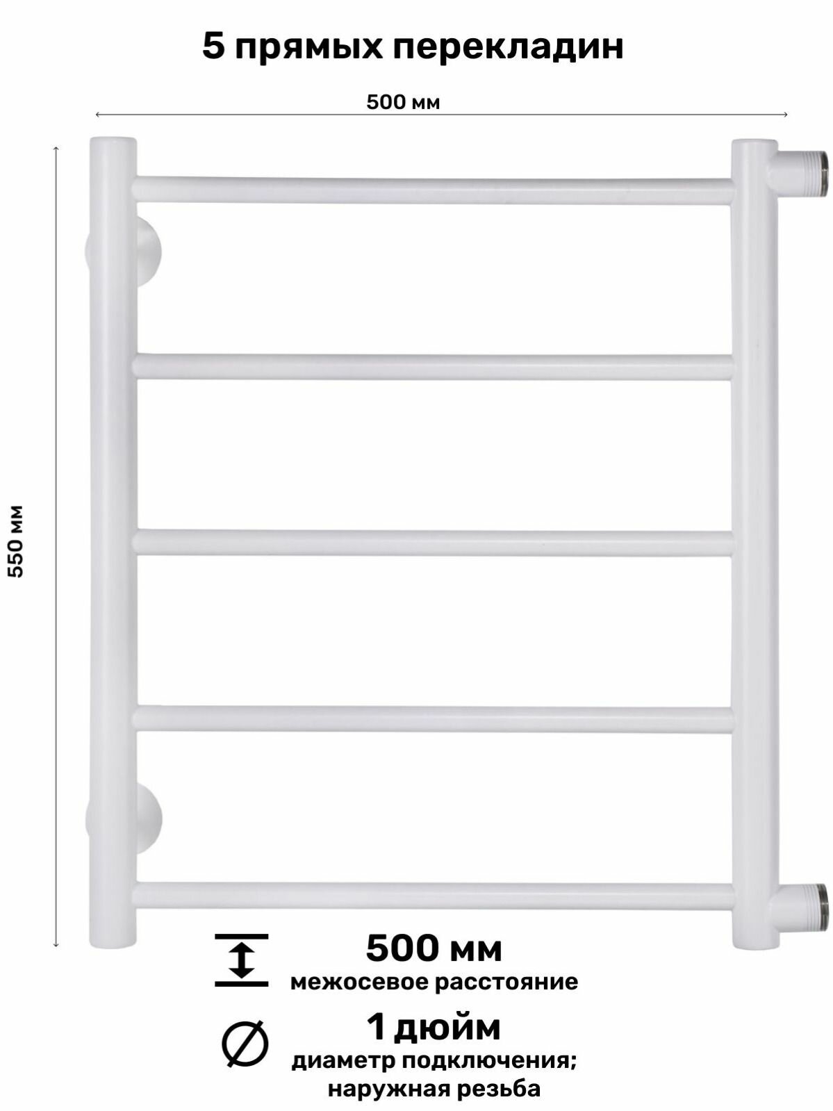 Полотенцесушитель водяной Лесенка Прямая 500х500 белый боковое подключение 1 дюйм интересное: