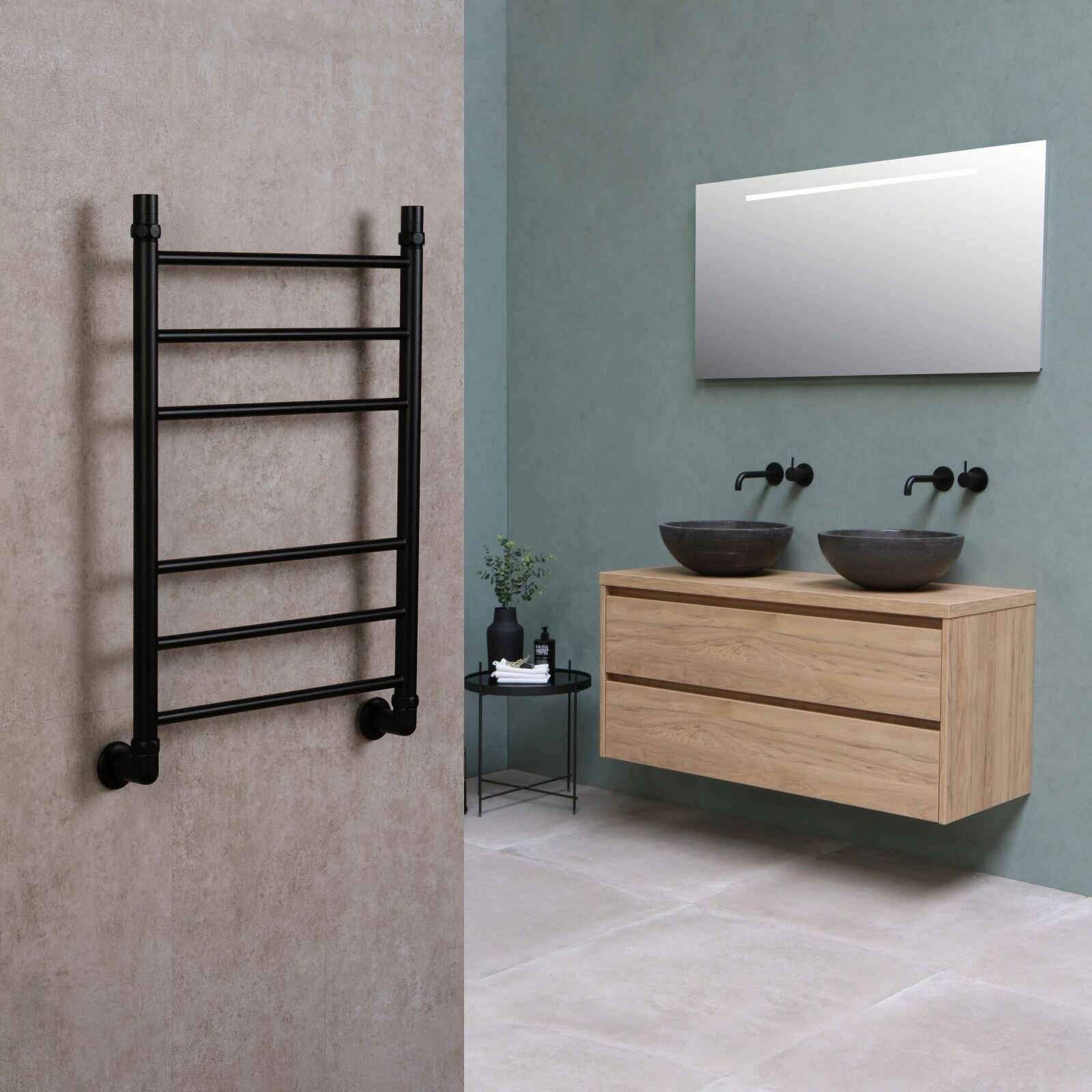 Полотенцесушитель водяной Лесенка Прямая Лайт Люкс 500*600 чёрный матовый универсальное подключение наружная резьба 1 дюйм