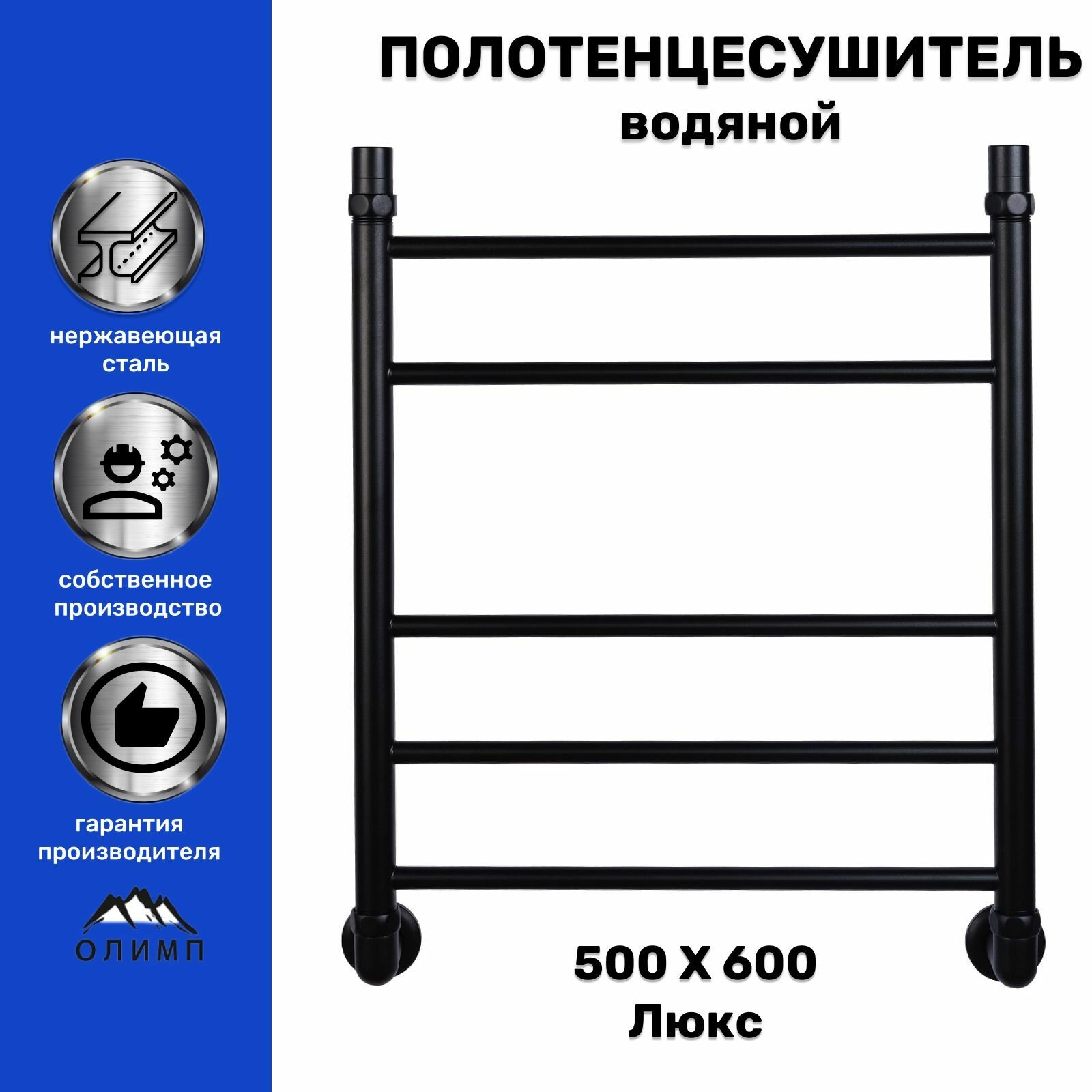 Купить Полотенцесушитель водяной Лесенка Прямая Лайт Люкс 500*600 чёрный матовый универсальное подключение наружная резьба 1 дюйм