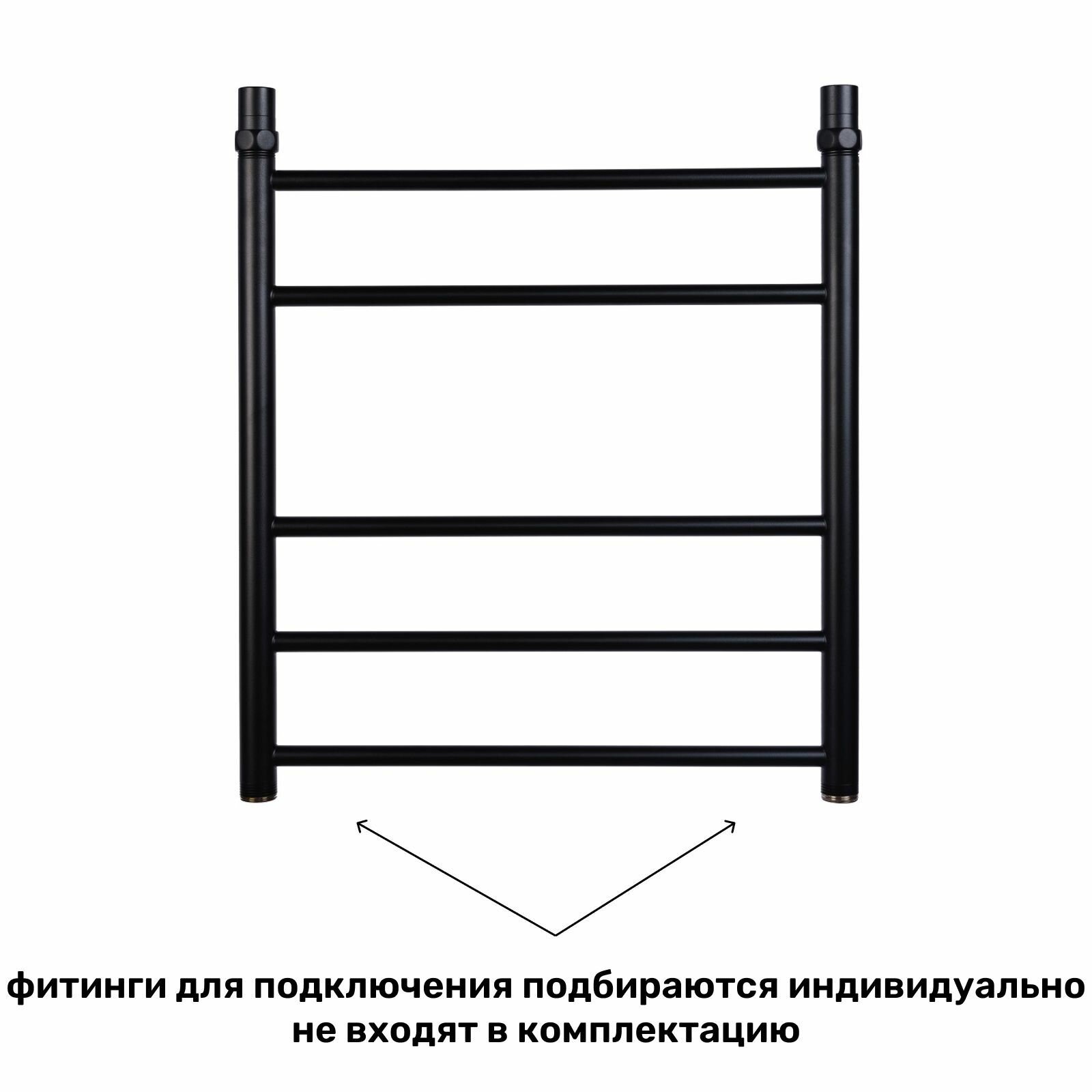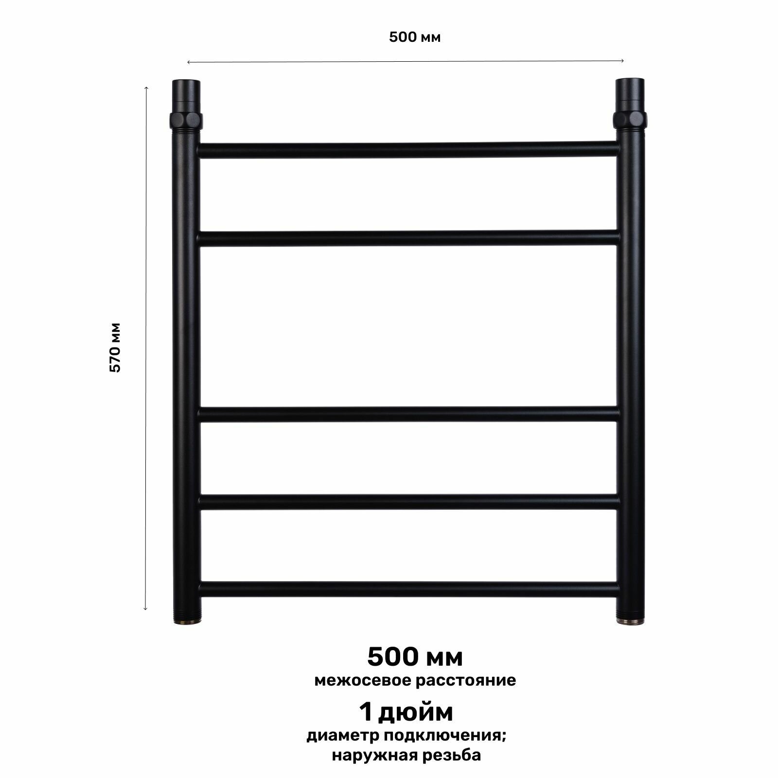 Полотенцесушитель водяной Лесенка Прямая Лайт 500*600 чёрный матовый универсальное подключение наружная резьба 1 дюйм
