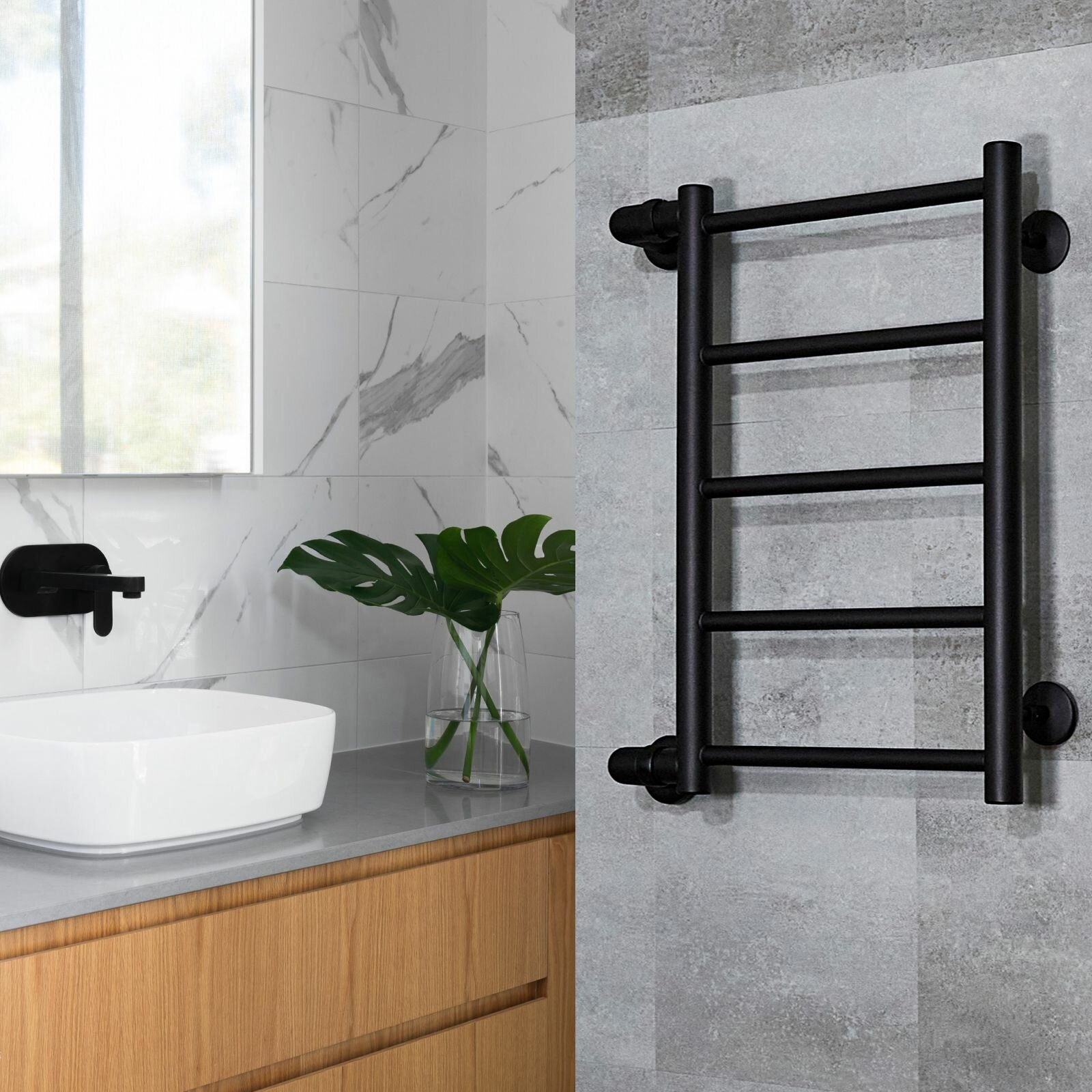 Полотенцесушитель Лесенка Прямая чёрный матовый универсальное боковое подключение 1 дюйм