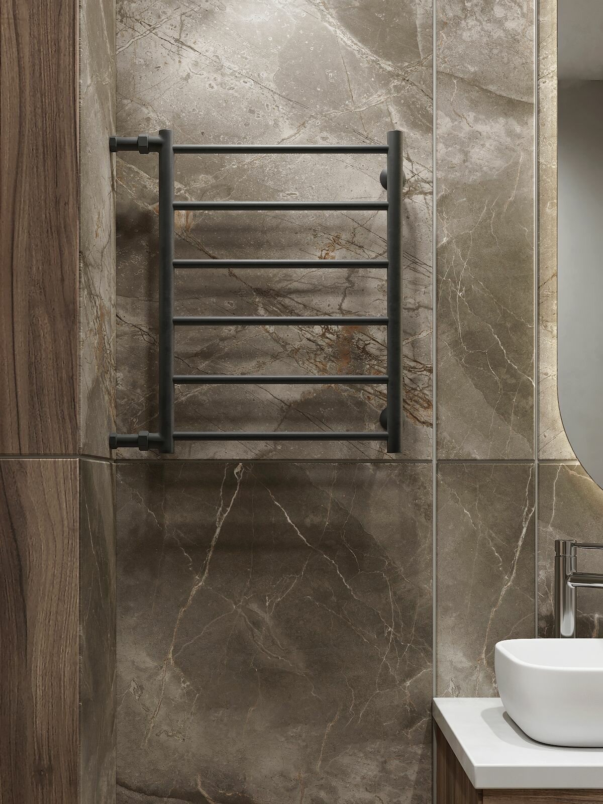 СохранитьПолотенцесушитель Лесенка Прямая чёрный матовый универсальное боковое подключение 1 дюйм интересное: